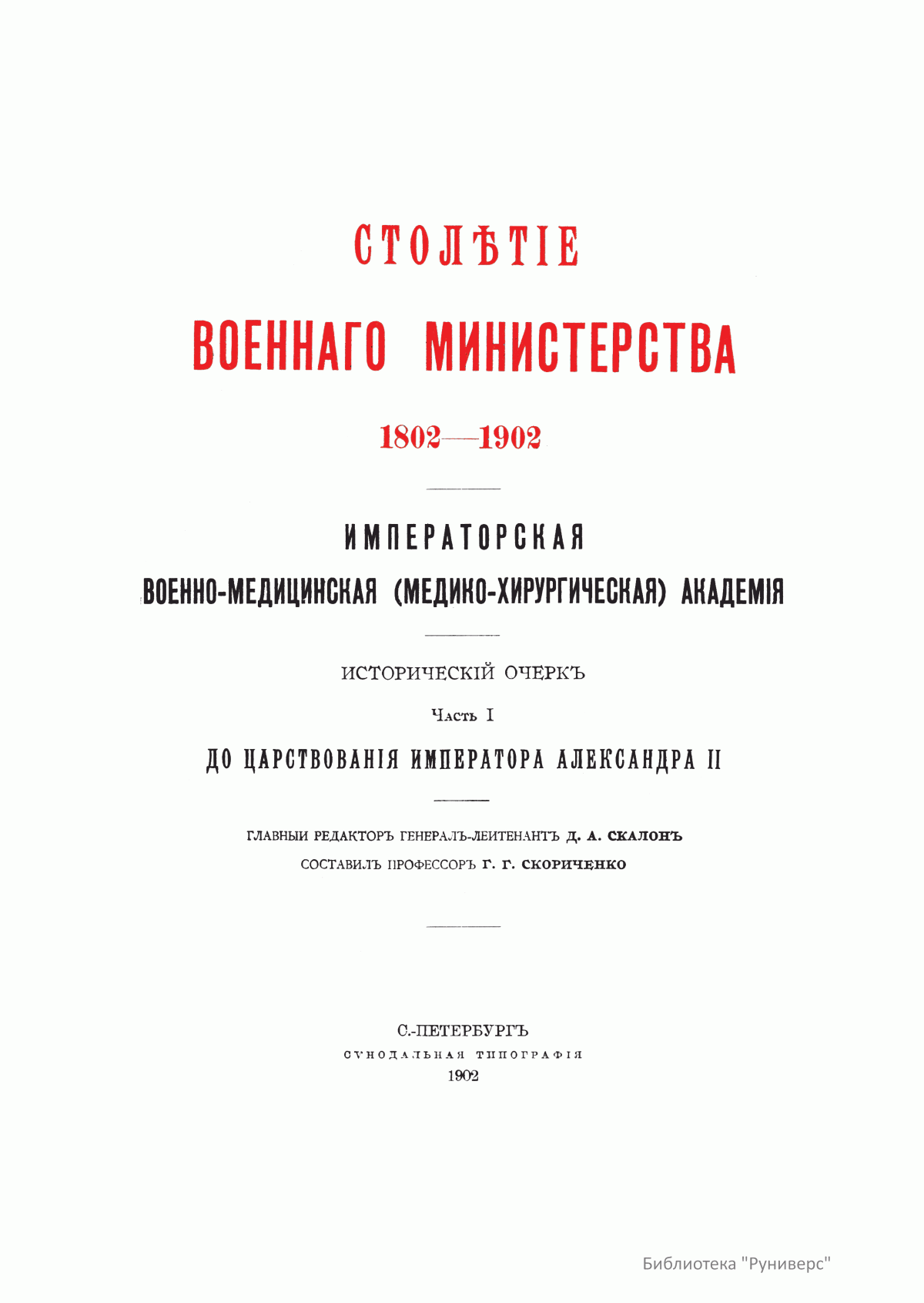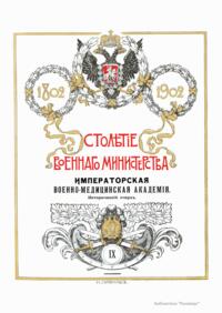 Столѣтiе военнаго министерства. 1802-1902. Императорская военно-медицинская (медико-хирургическая) академiя