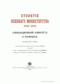Столѣтiе военнаго министерства. 1802-1902. Александровскiй комитетъ о раненыхъ. Историческiй очеркъ
