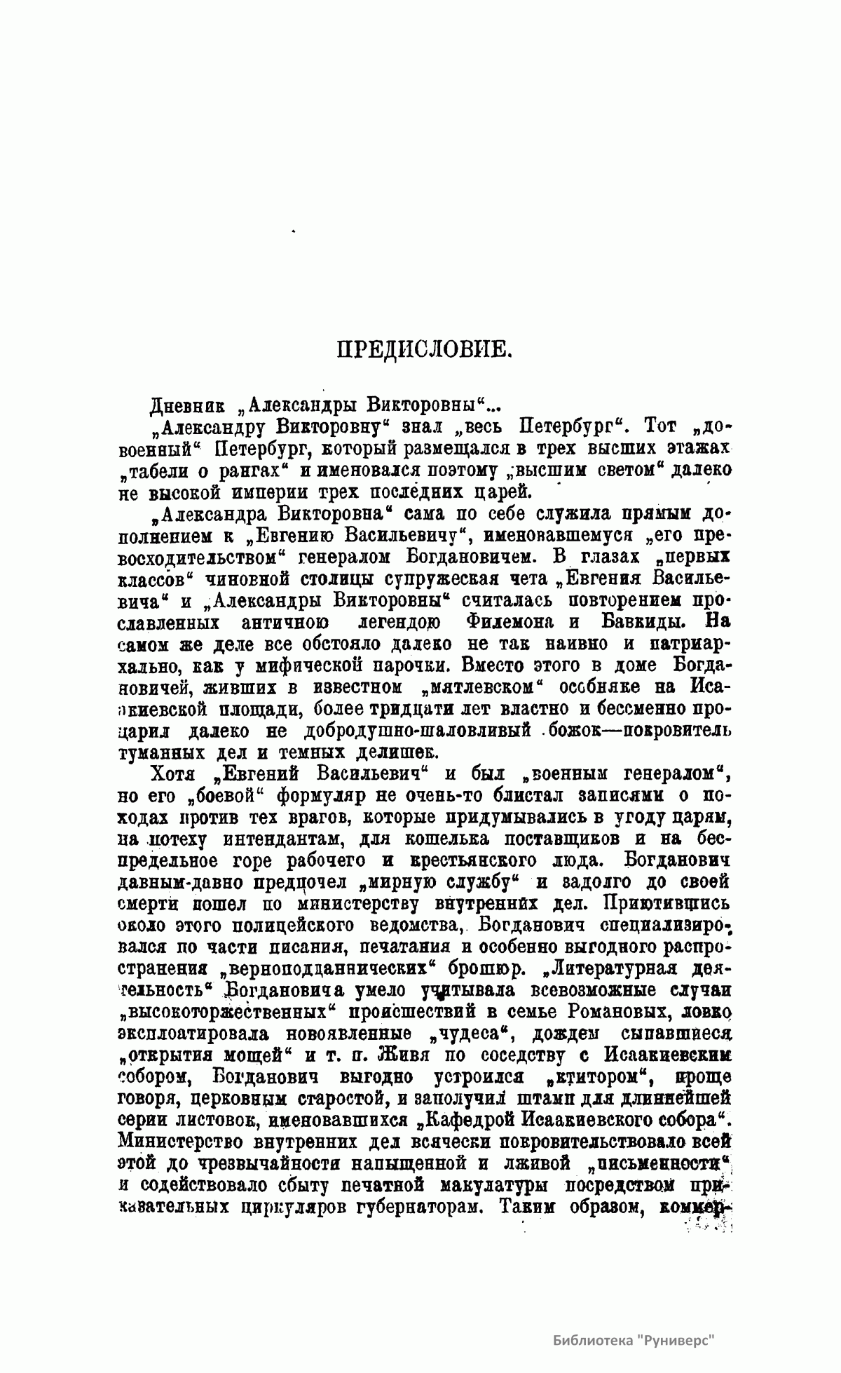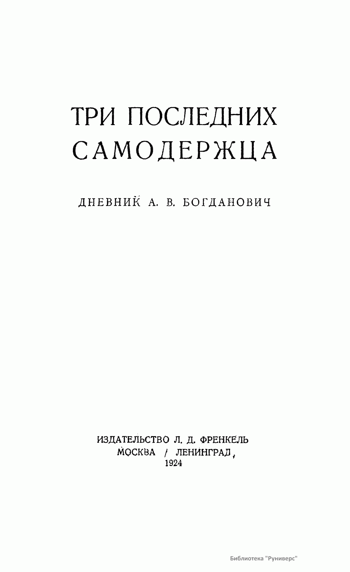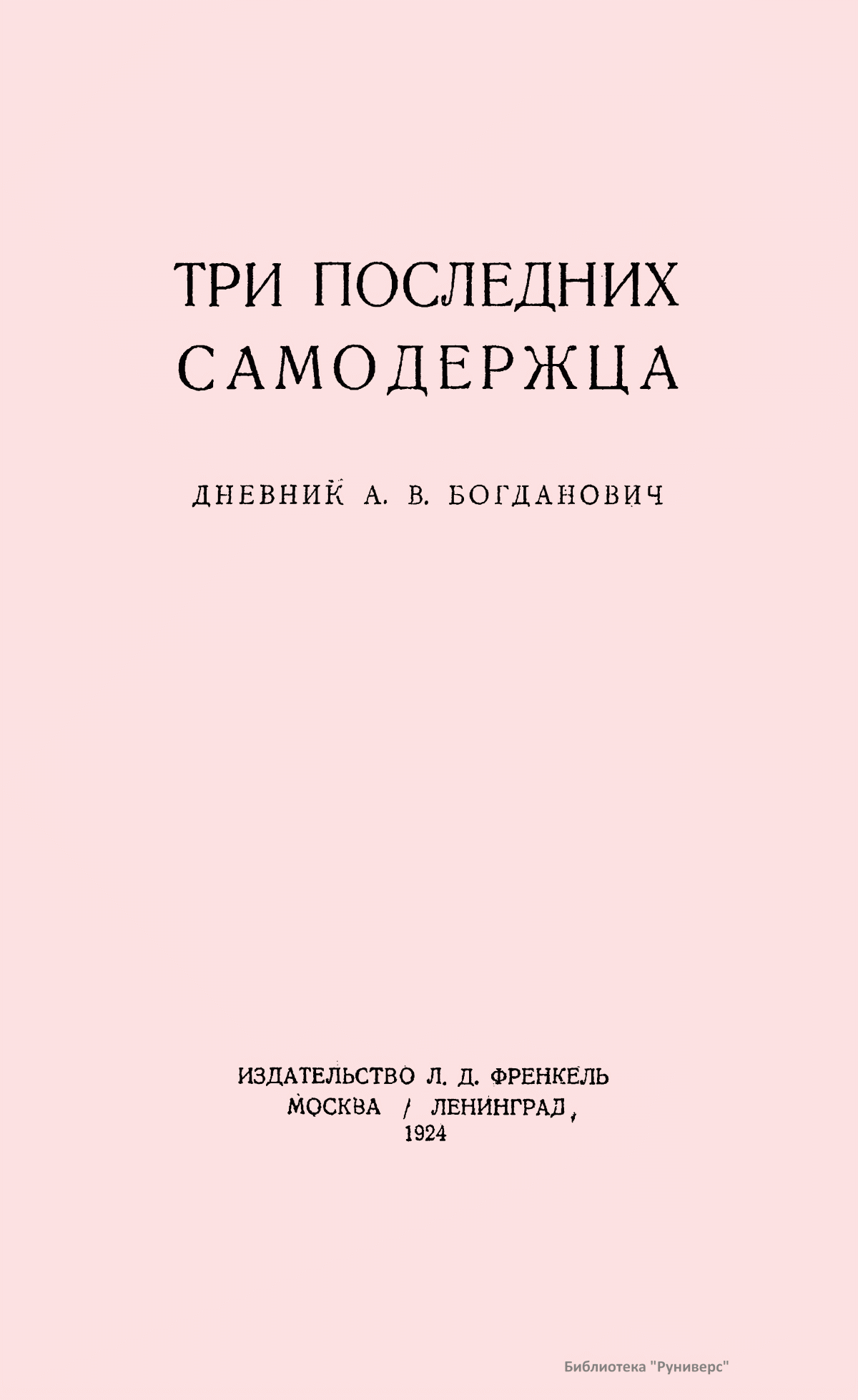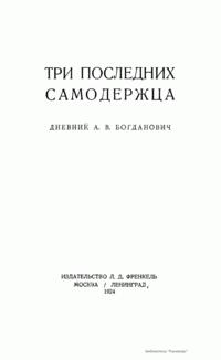 Автор книги – хозяйка светского салона Александра Викторовна Богданович – жена генерала от инфантерии писателя Евгения Васильевича Богдановича. Дом Богдановичей в Петербурге, на Исаакиевской площади, на протяжении 33 лет в царствование трех последних Романовых: Александра II, Александра III и Николая II – был открыт для многочисленных гостей. По вечерам Александра Викторовна аккуратно записывала в тетрадь, кто приезжал в дом и о чем рассказывал. Настоящее издание – образец дневника, отразившего события, обсуждавшиеся в частном доме с 1879-го по 1912 год. Дневник опубликован не полностью, содержит тенденциозное вступление, характерное для послереволюционных изданий, когда к власти в России пришли большевики.