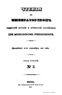 Чтения в Императорском Обществе Истории и Древностей Российских при Московском Университете. Год третий. №2