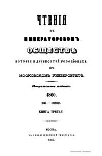 Чтения в Императорском Обществе Истории и Древностей Российских при Московском Университете. 1860. Июль-Сентябрь. Книга третья