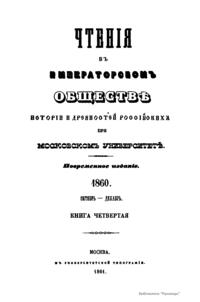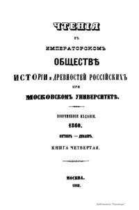 Чтенiя въ Императорскомъ Обществѣ Исторiи и Древностей Россiйскихъ при Московскомъ Университетѣ. 1860. Октябрь-Декабрь. Книга четвертая