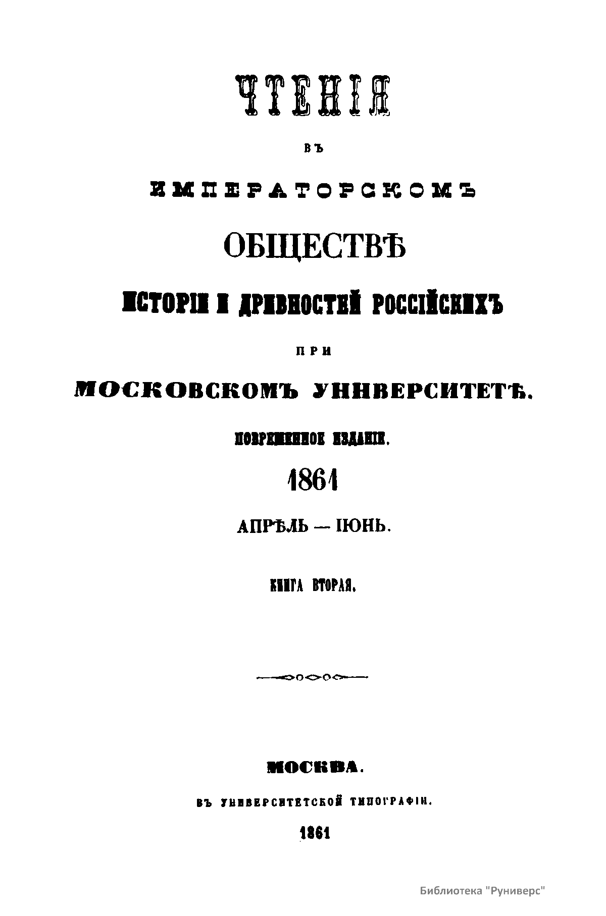 Чтенiя въ Императорскомъ Обществѣ Исторiи и Древностей Россiйскихъ при Московскомъ Университетѣ. 1861. Апрѣль-Iюнь. Книга вторая