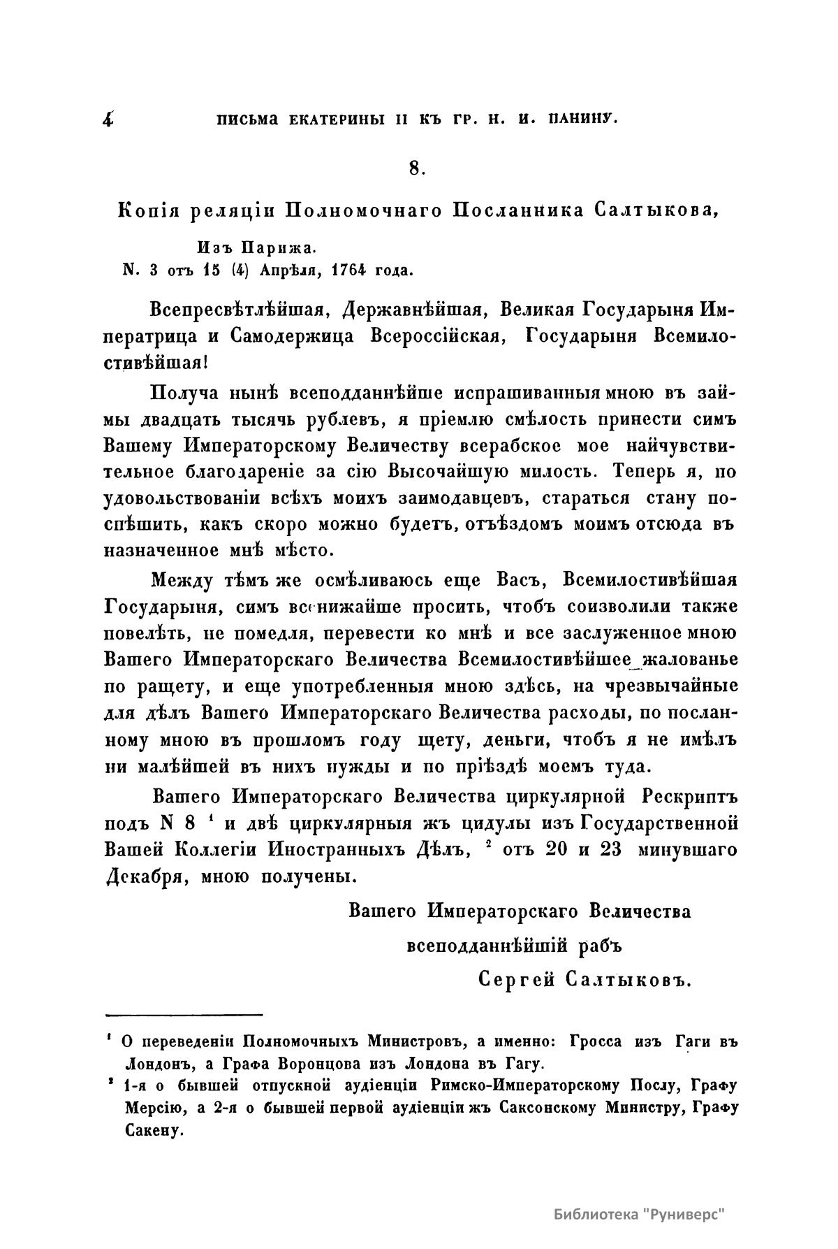 Письма и записки Императрицы Екатерины Второй к Графу Никите Ивановичу Панину