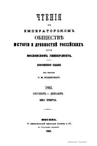 Чтенiя въ Императорскомъ Обществѣ Исторiи и Древностей Россiйскихъ при Московскомъ Университетѣ. 1865. Октябрь-Декабрь. Книга четвертая