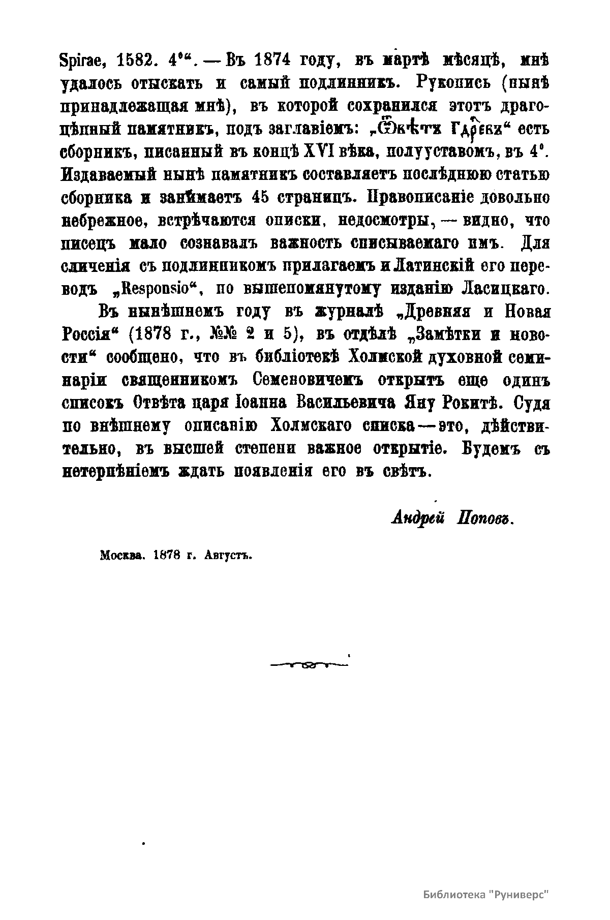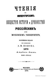 Чтенiя въ Императорскомъ Обществѣ Исторiи и Древностей Россiйскихъ при Московскомъ Университетѣ. 1878. Апрѣль-Iюнь. Книга вторая