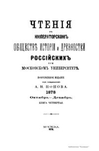 Чтенiя въ Императорскомъ Обществѣ Исторiи и Древностей Россiйскихъ при Московскомъ Университетѣ. 1878. Октябрь-Декабрь. Книга четвертая