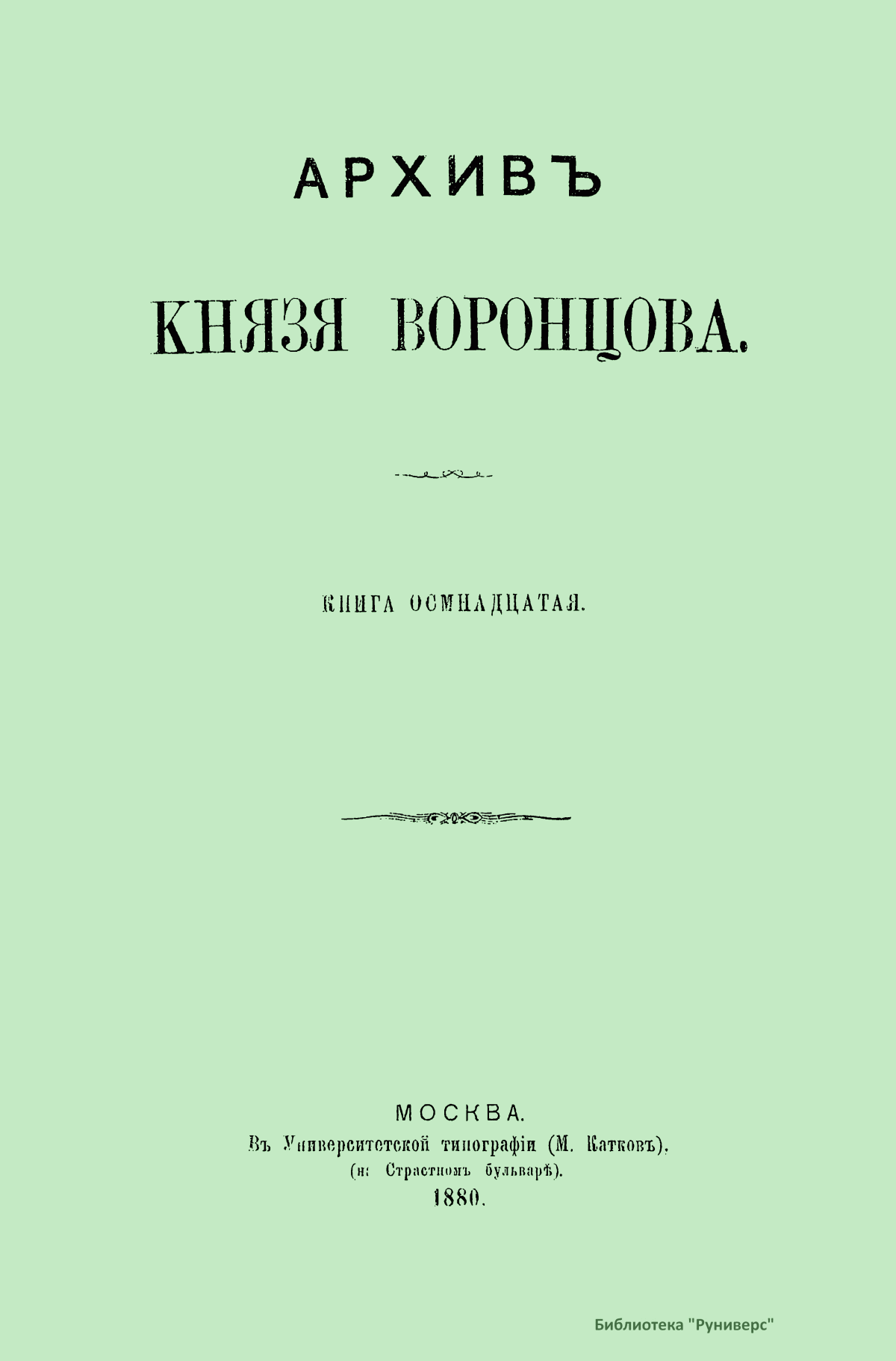 Архивъ Князя Воронцова. Книга осмнадцатая