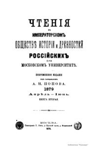 Чтенiя въ Императорскомъ Обществѣ Исторiи и Древностей Россiйскихъ при Московскомъ Университетѣ. 1879. Апрѣль-Iюнь. Книга вторая
