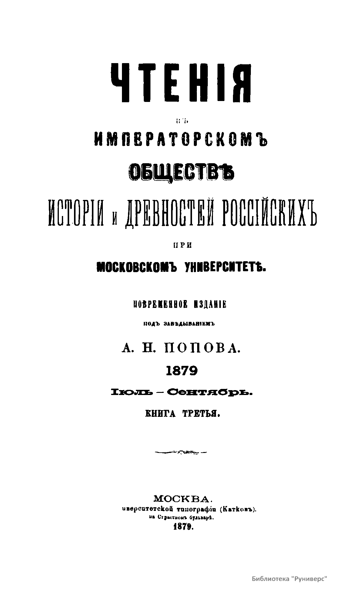 Чтенiя въ Императорскомъ Обществѣ Исторiи и Древностей Россiйскихъ при Московскомъ Университетѣ. 1879. Iюль-Сентябрь. Книга третья