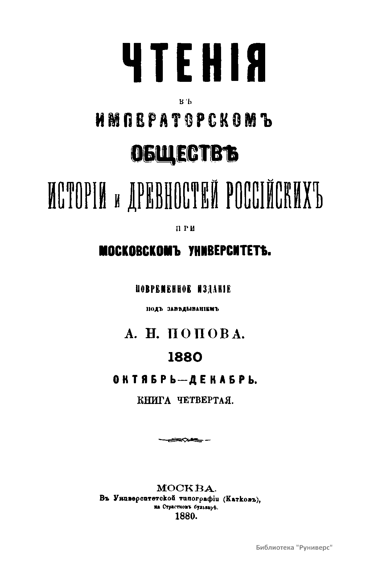 Чтенiя въ Императорскомъ Обществѣ Исторiи и Древностей Россiйскихъ при Московскомъ Университетѣ. 1880. Октябрь-Декабрь. Книга четвертая