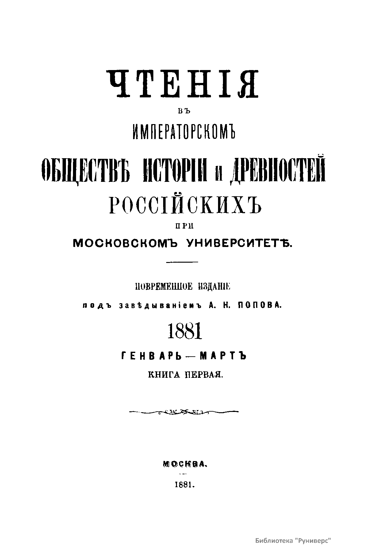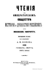 Чтенiя въ Императорскомъ Обществѣ Исторiи и Древностей Россiйскихъ при Московскомъ Университетѣ. 1881. Генварь-Мартъ. Книга первая