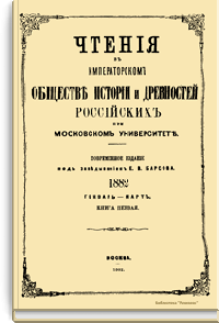 Чтенiя въ Императорскомъ Обществѣ Исторiи и Древностей Россiйскихъ при Московскомъ Университетѣ. 1882. Генварь-Мартъ. Книга первая