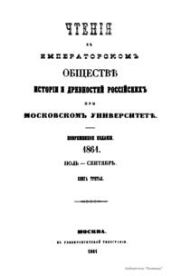 Чтения в Императорском Обществе Истории и Древностей Российских при Московском Университете. 1861. Июль-Сентябрь. Книга третья