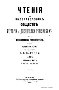 Чтенiя въ Императорскомъ Обществѣ Исторiи и Древностей Россiйскихъ при Московскомъ Университетѣ. 1884. Генварь-Мартъ. Книга первая