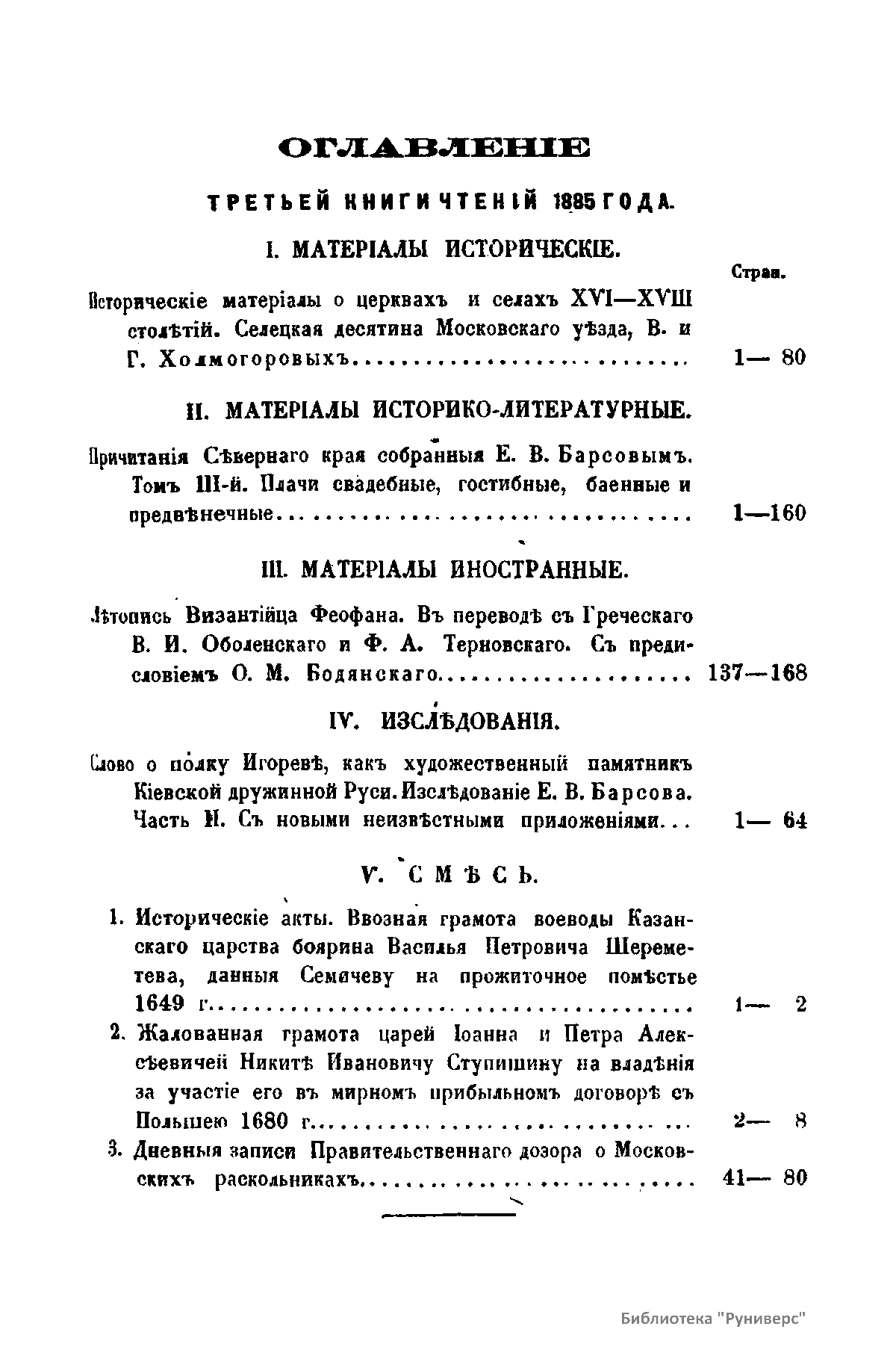 Чтенiя въ Императорскомъ Обществѣ Исторiи и Древностей Россiйскихъ при Московскомъ Университетѣ. 1885. Iюль-Сентябрь. Книга третья