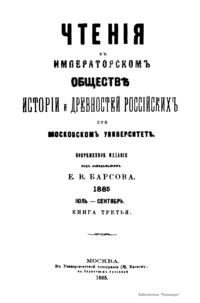 Чтения в Императорском Обществе Истории и Древностей Российских при Московском Университете. 1885. Июль-Сентябрь. Книга третья