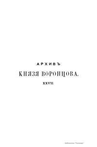 Архив Князя Воронцова. Книга двадцать седьмая