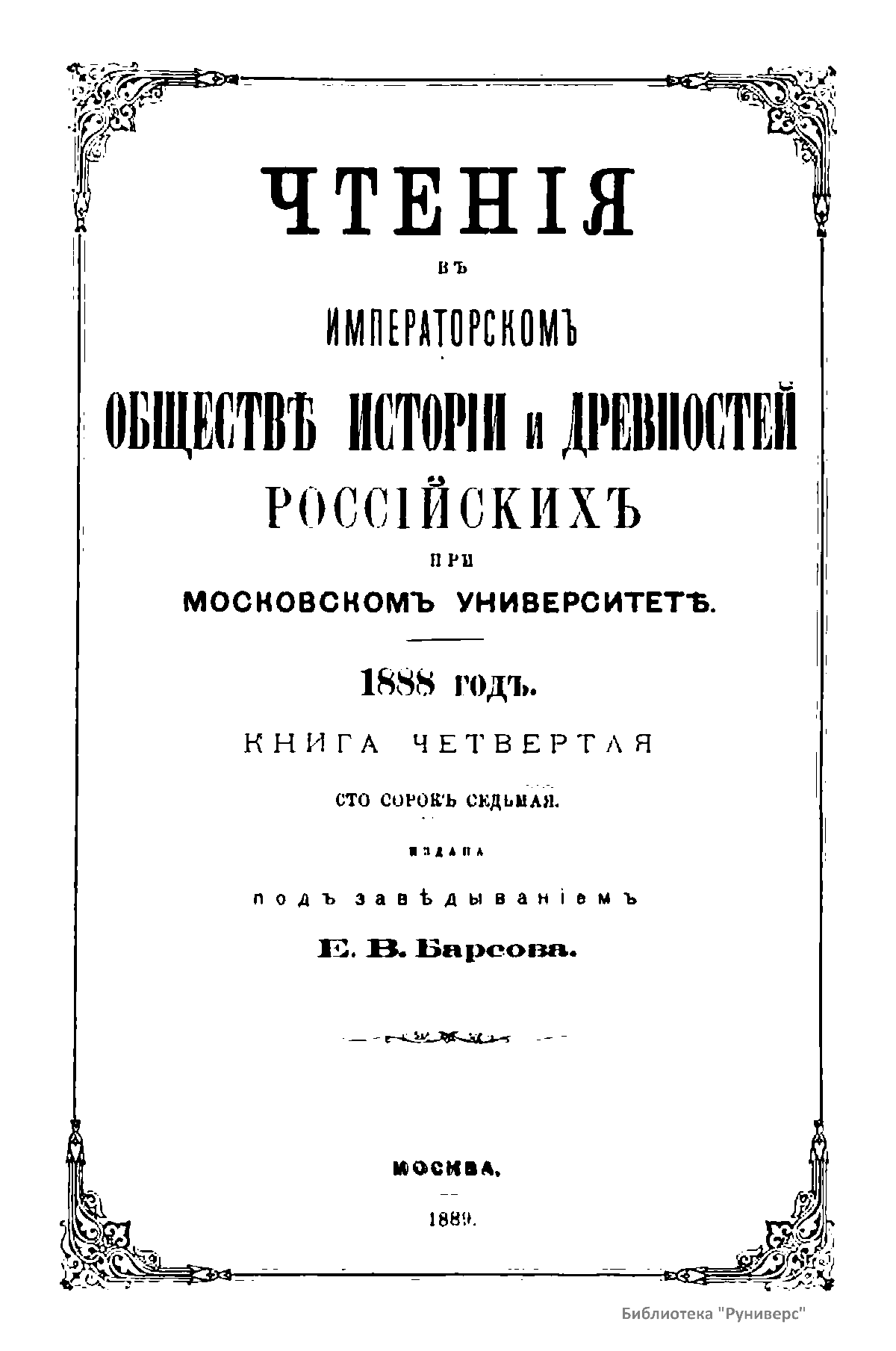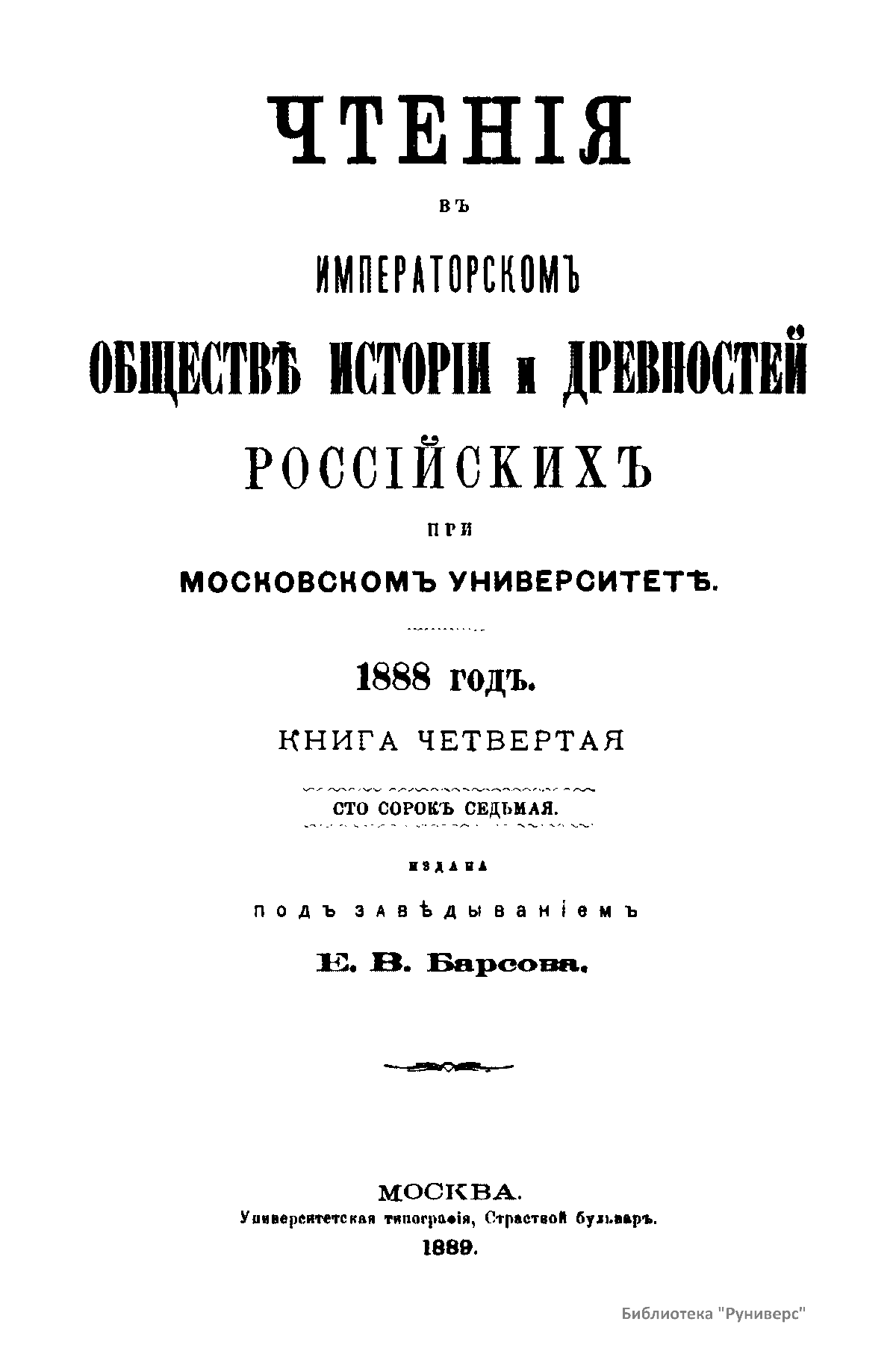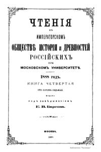 Чтенiя въ Императорскомъ Обществѣ Исторiи и Древностей Россiйскихъ при Московскомъ Университетѣ. 1888 годъ. Книга четвертая