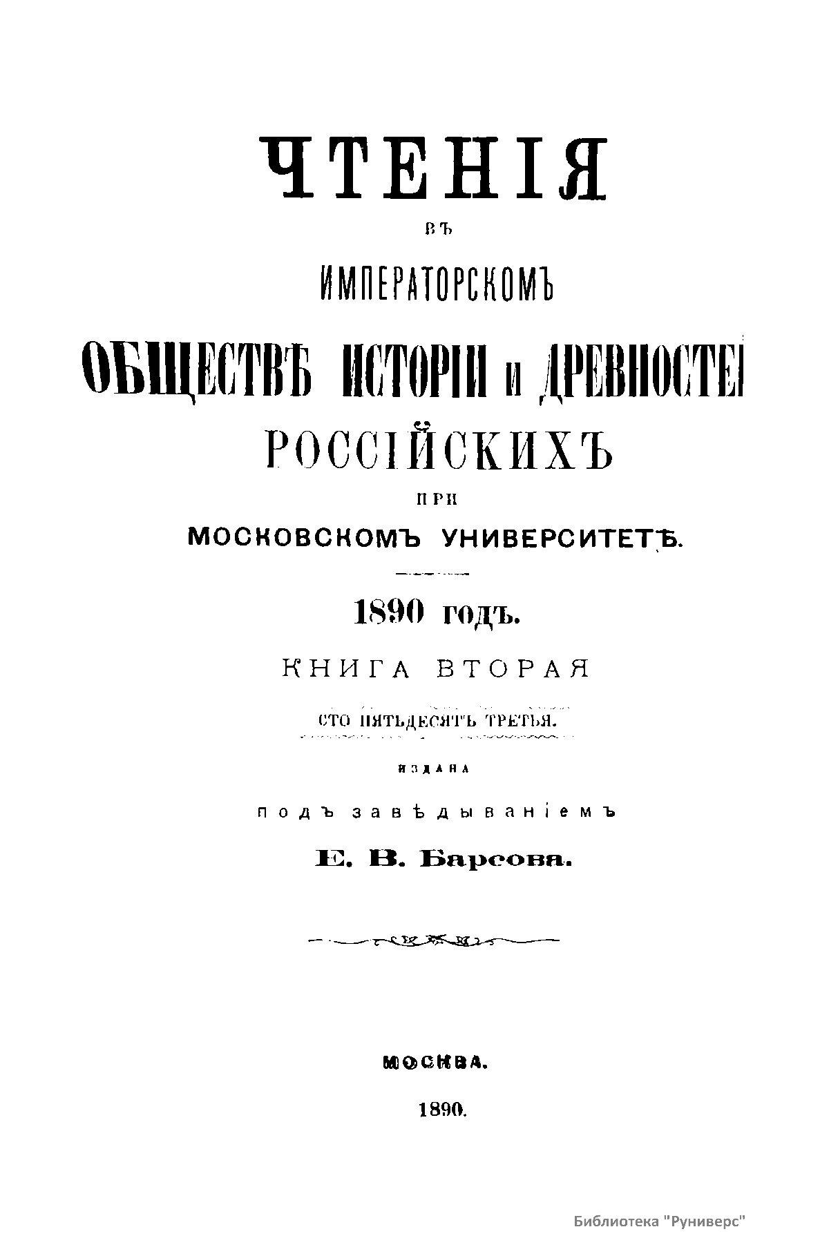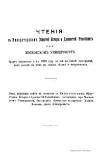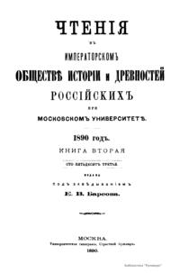 Чтенiя въ Императорскомъ Обществѣ Исторiи и Древностей Россiйскихъ при Московскомъ Университетѣ. 1890 годъ. Книга вторая