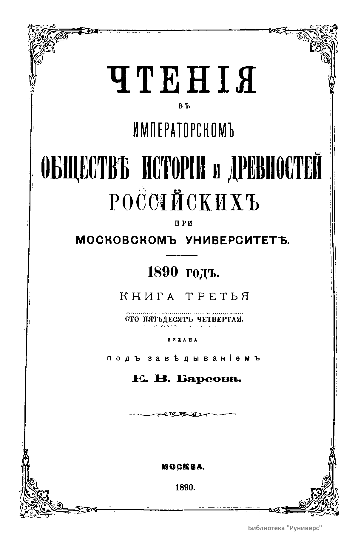 Чтенiя въ Императорскомъ Обществѣ Исторiи и Древностей Россiйскихъ при Московскомъ Университетѣ. 1890 годъ. Книга третья