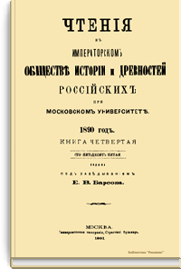 Чтенiя въ Императорскомъ Обществѣ Исторiи и Древностей Россiйскихъ при Московскомъ Университетѣ. 1890 годъ. Книга четвертая