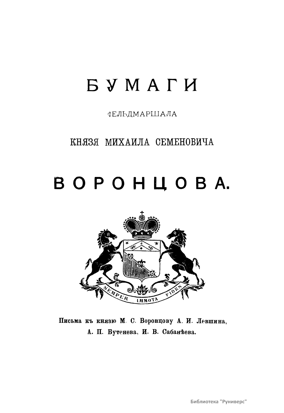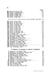 Издание представляет документы из архива графов (с 1845 г. князей) Воронцовых, крупных политических деятелей России XVIII и XIX вв.: Михаила Илларионовича (1714 – 1767) – канцлера при Елизавете Петровне; Романа Илларионовича (1707 – 1783); Александра Романовича (1741 – 1805) – канцлера в 1802 – 1804 гг.; Семена Романовича (1744 – 1832) – посла в Англии в 1785 – 1806 гг.; Михаила Семеновича (1782 – 1856) – фельдмаршала, наместника Кавказа в 1845 – 1853 гг. Архив издан в 40 тт. (1870 – 1895) под редакцией П. И. Бартенева. Содержит огромный материал по внешней политике, по управлению хозяйством Елизаветы Петровны (кн. 1), по делу Миниха и Бирона (кн. 2), о «чумном бунте» 1771 г. в Москве, о движении Е. И. Пугачева (кн. 16), о А. Н. Радищеве (кн. 5, 12, 24). Книга 21-я занята «Записками» Е. Р. Воронцовой (Дашковой). В книге 24-й – свыше 100 писем А. В. Суворова. Среди обширной переписки Воронцовых встречаются письма Вольтера, Д'Аламбера, Жозефа де Местра, Костюшки, Талейрана, Питта и др.