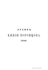 Архив Князя Воронцова. Книга тридцать девятая