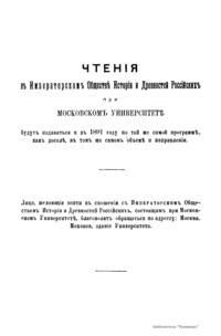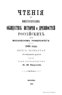 Чтенiя въ Императорскомъ Обществѣ Исторiи и Древностей Россiйскихъ при Московскомъ Университетѣ. 1891 годъ. Книга четвертая