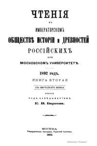 Чтенiя въ Императорскомъ Обществѣ Исторiи и Древностей Россiйскихъ при Московскомъ Университетѣ. 1892 годъ. Книга вторая