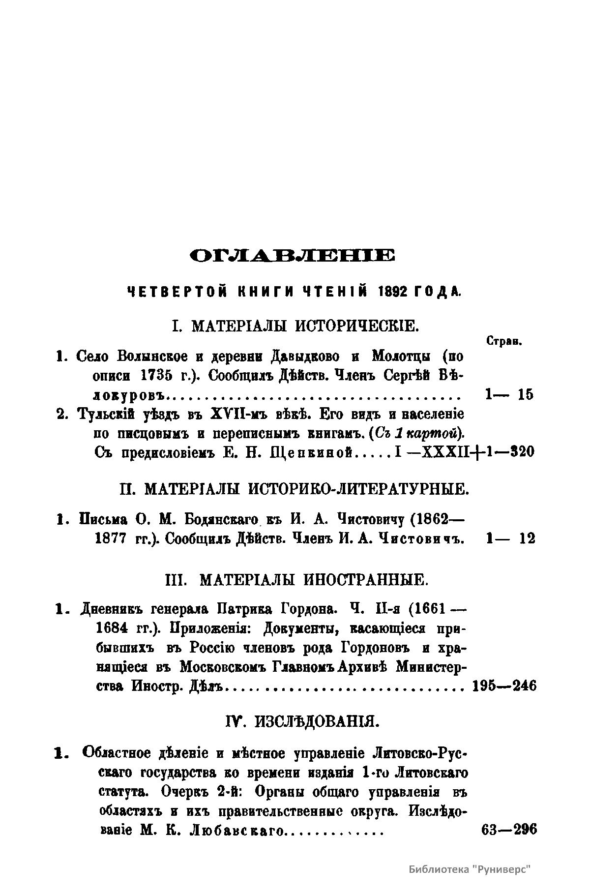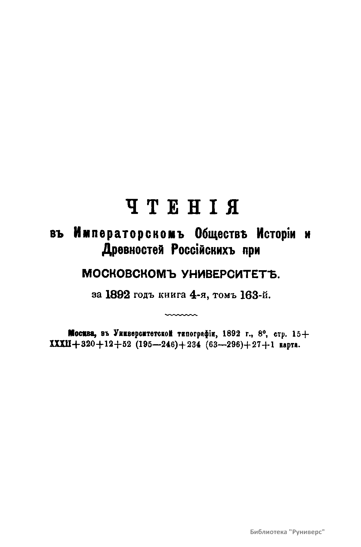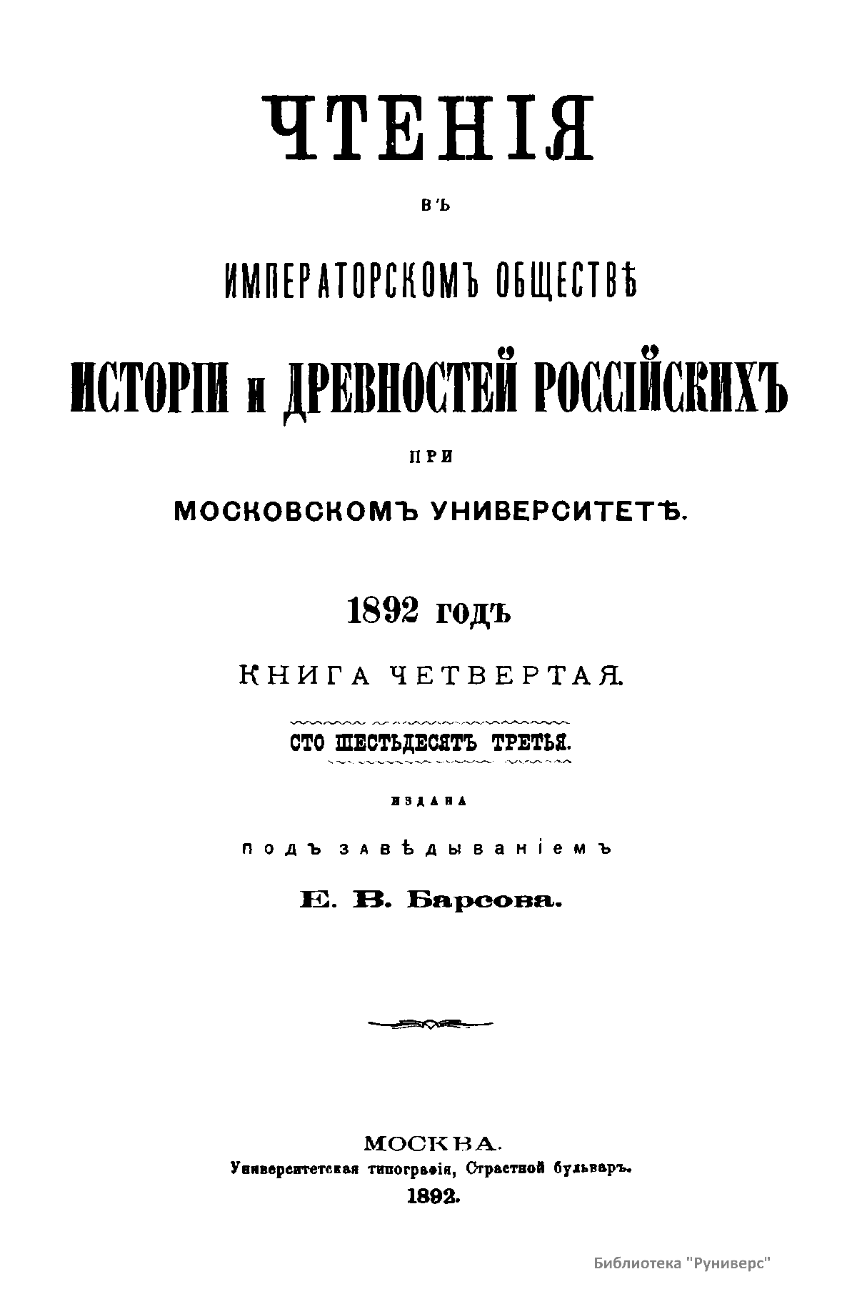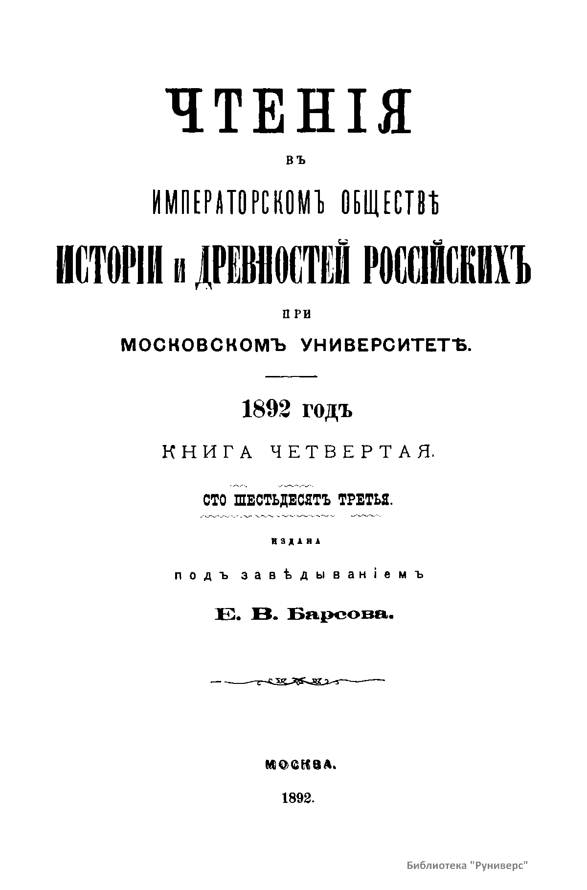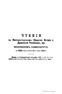 Чтенiя въ Императорскомъ Обществѣ Исторiи и Древностей Россiйскихъ при Московскомъ Университетѣ. 1892 годъ. Книга четвертая