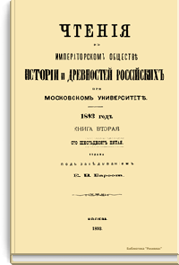 Чтенiя въ Императорскомъ Обществѣ Исторiи и Древностей Россiйскихъ при Московскомъ Университетѣ. 1893 годъ. Книга вторая