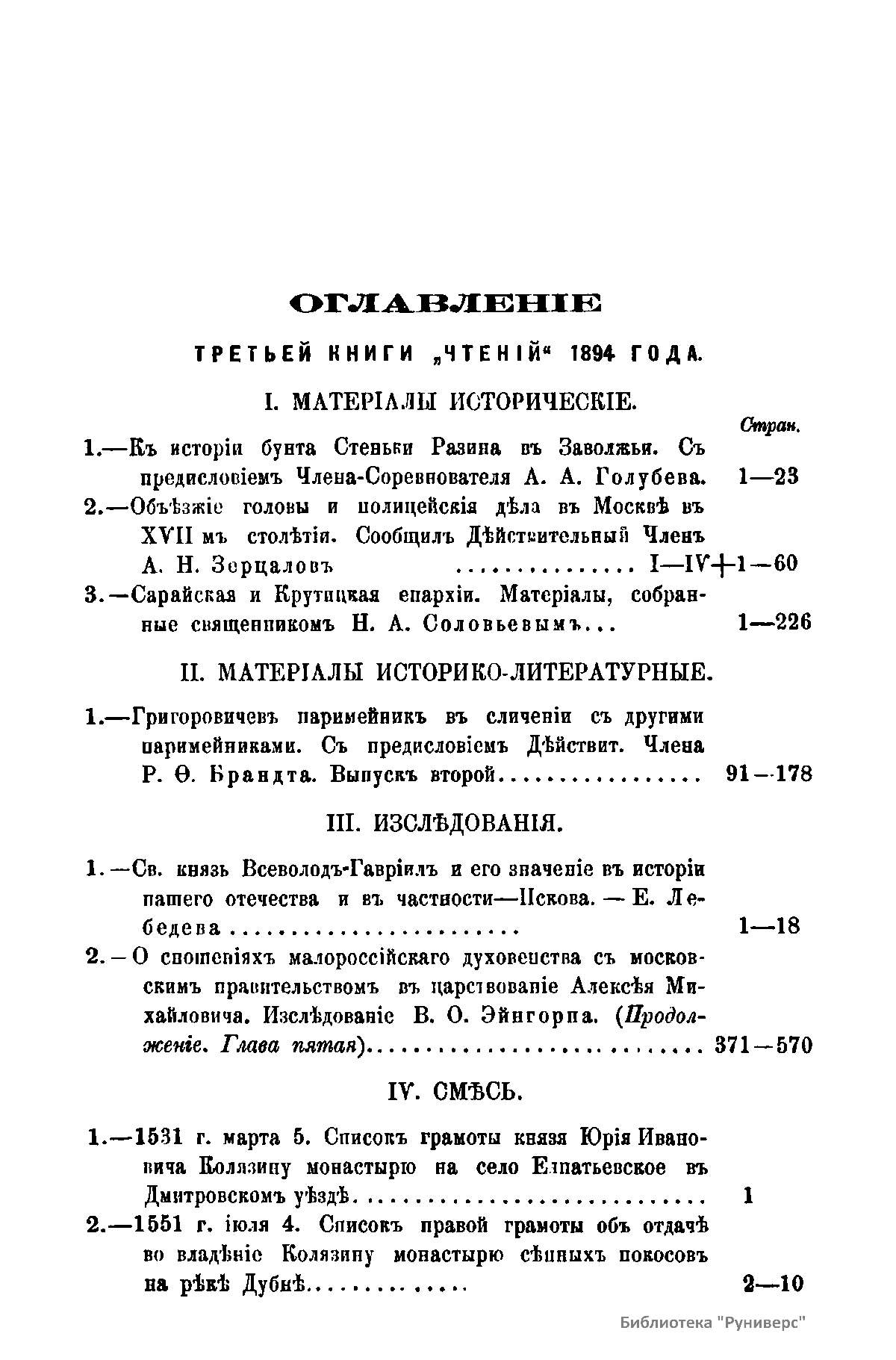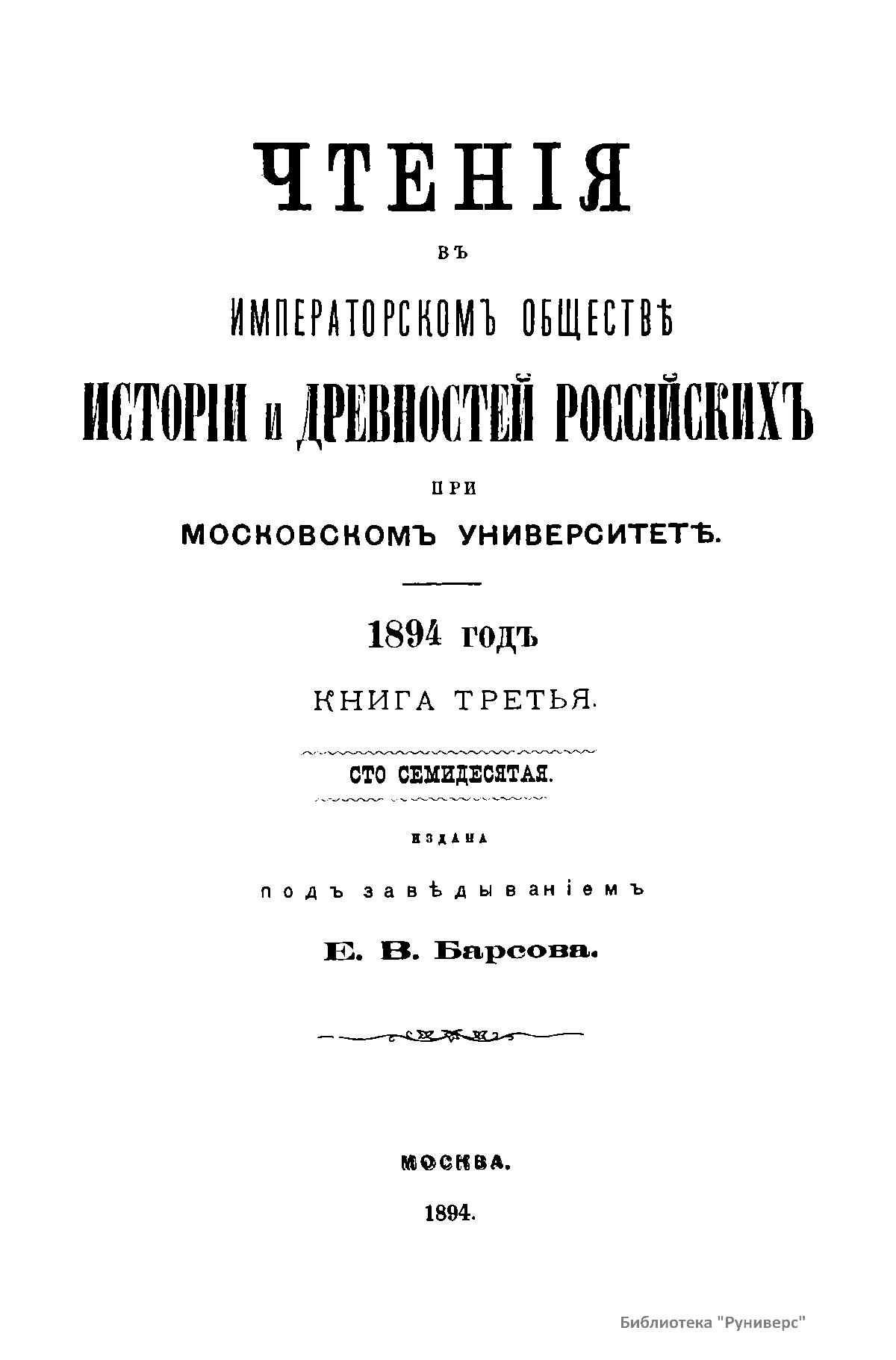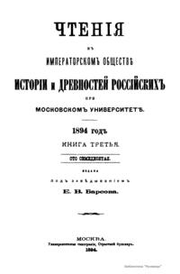 Чтенiя въ императорскомъ обществѣ Исторiи и Древностей Россiйских при Московском Университетѣ. 1894 годъ. Книга третья