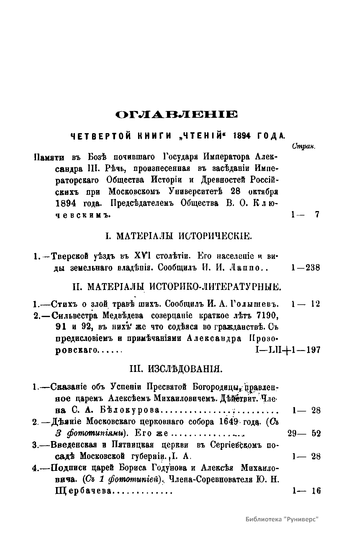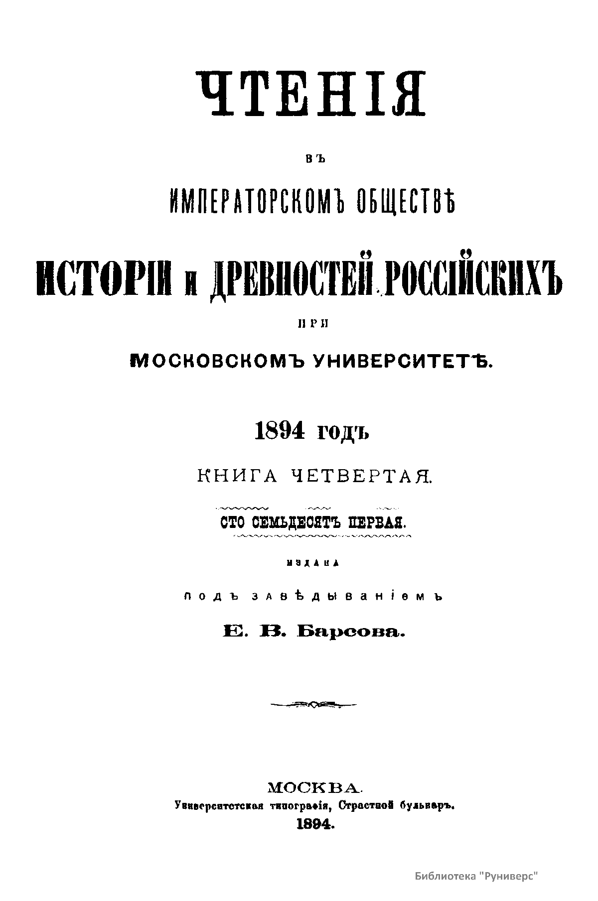 Чтенiя въ императорскомъ обществѣ Исторiи и Древностей Россiйских при Московском Университетѣ. 1894 годъ. Книга четвертая