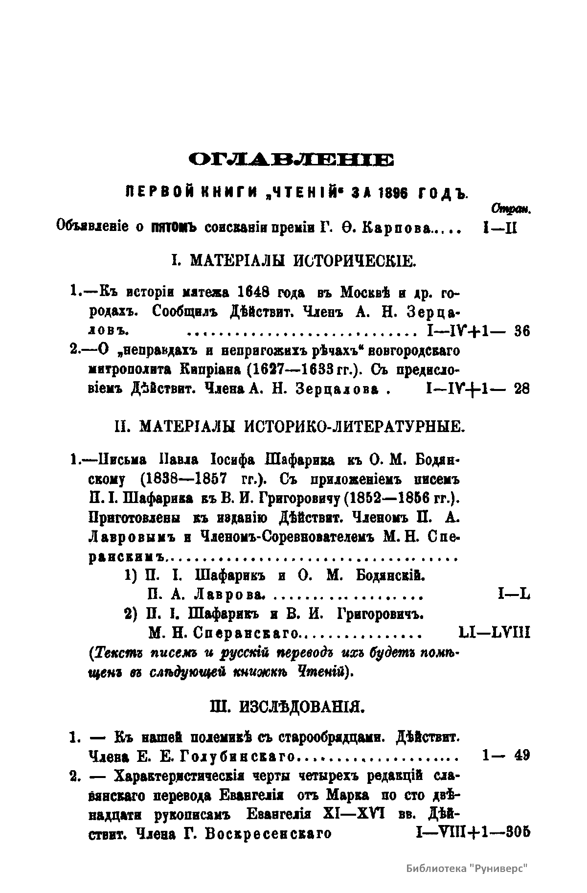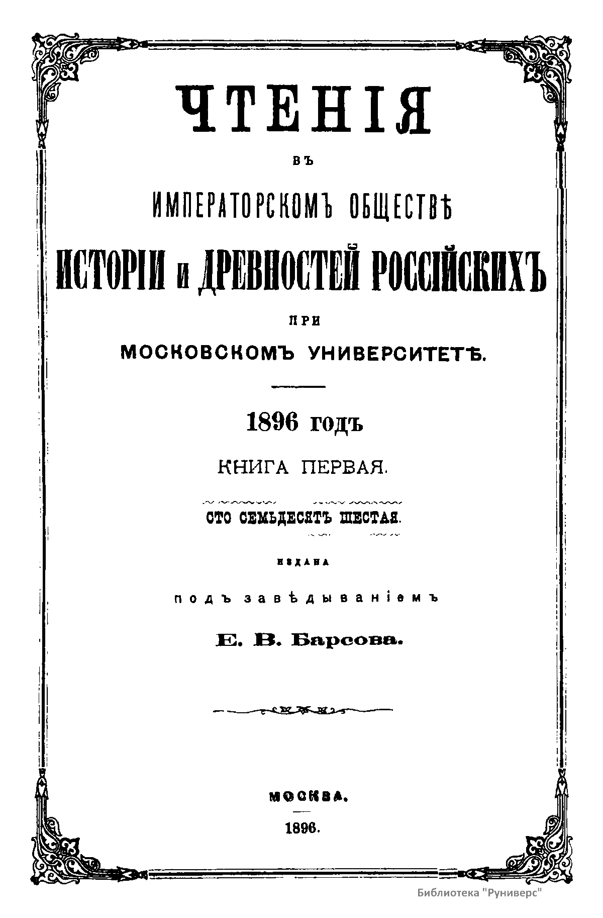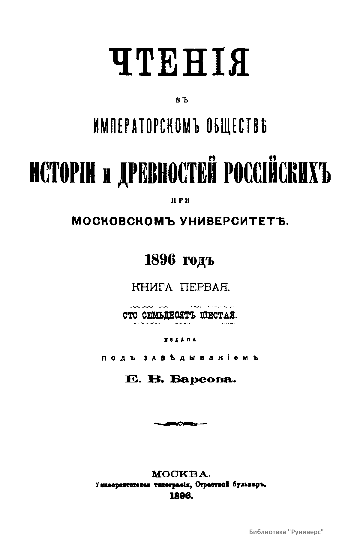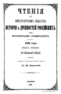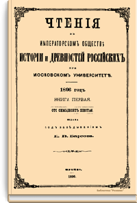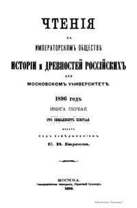Чтенiя въ императорскомъ обществѣ Исторiи и Древностей Россiйских при Московском Университетѣ. 1896 годъ. Книга первая