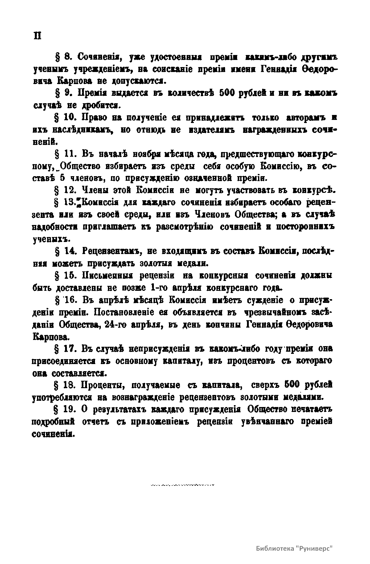 «Чтения в Императорском обществе истории и древностей российских» – периодическое издание трудов Общества. Выпускались отдельными книгами на протяжении 72 лет с десятилетним перерывом. Первая книга вышла в свет в январе 1846 г. Каждая книга состояла из четырех разделов: исторических исследований, отечественных исторических документальных материалов, иностранных материалов и смеси. Публиковались также исследования и материалы по археологии, этнографии, нумизматике, палеографии и другим дисциплинам. До июня 1848 г. было выпущено 23 книги «Чтений». В июньской книге за 1848 г. О. М. Бодянский поместил записки Дж. Флетчера о Московском государстве, что вызвало недовольство Николая I. «Чтения» были закрыты, а Бодянский удален из Московского университета. Издание «Чтений» возобновилось только в 1858 г., когда Бодянский снова стал секретарем общества. Издание приняло славянофильское направление, к прежним четырем разделам «Чтений» прибавился раздел славянских материалов. С 1858 г. «Чтения» выходили в свет четыре раза в год.
