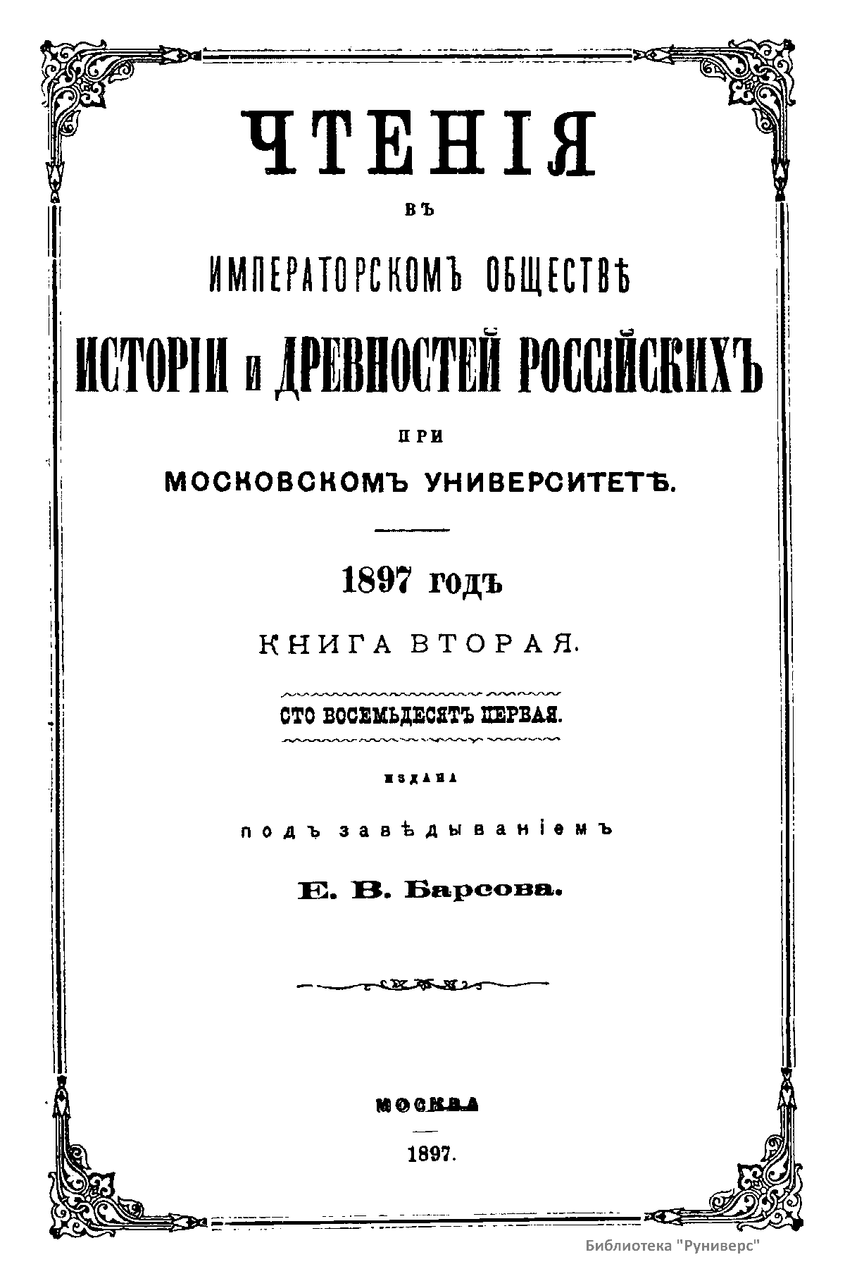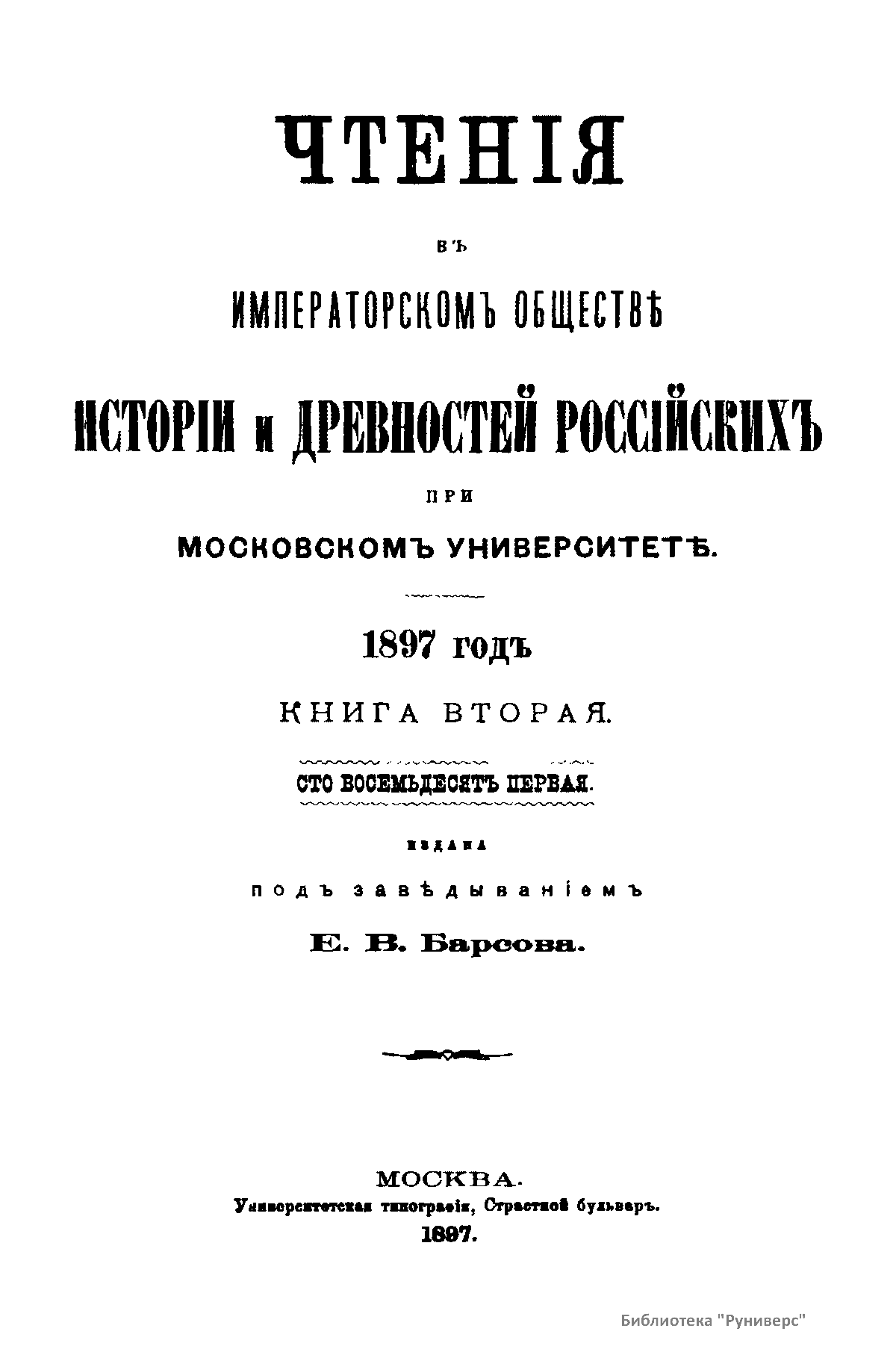 Чтенiя въ Императорскомъ Обществѣ Исторiи и Древностей Россiйскихъ при Московскомъ Университетѣ. 1897 годъ. Книга вторая