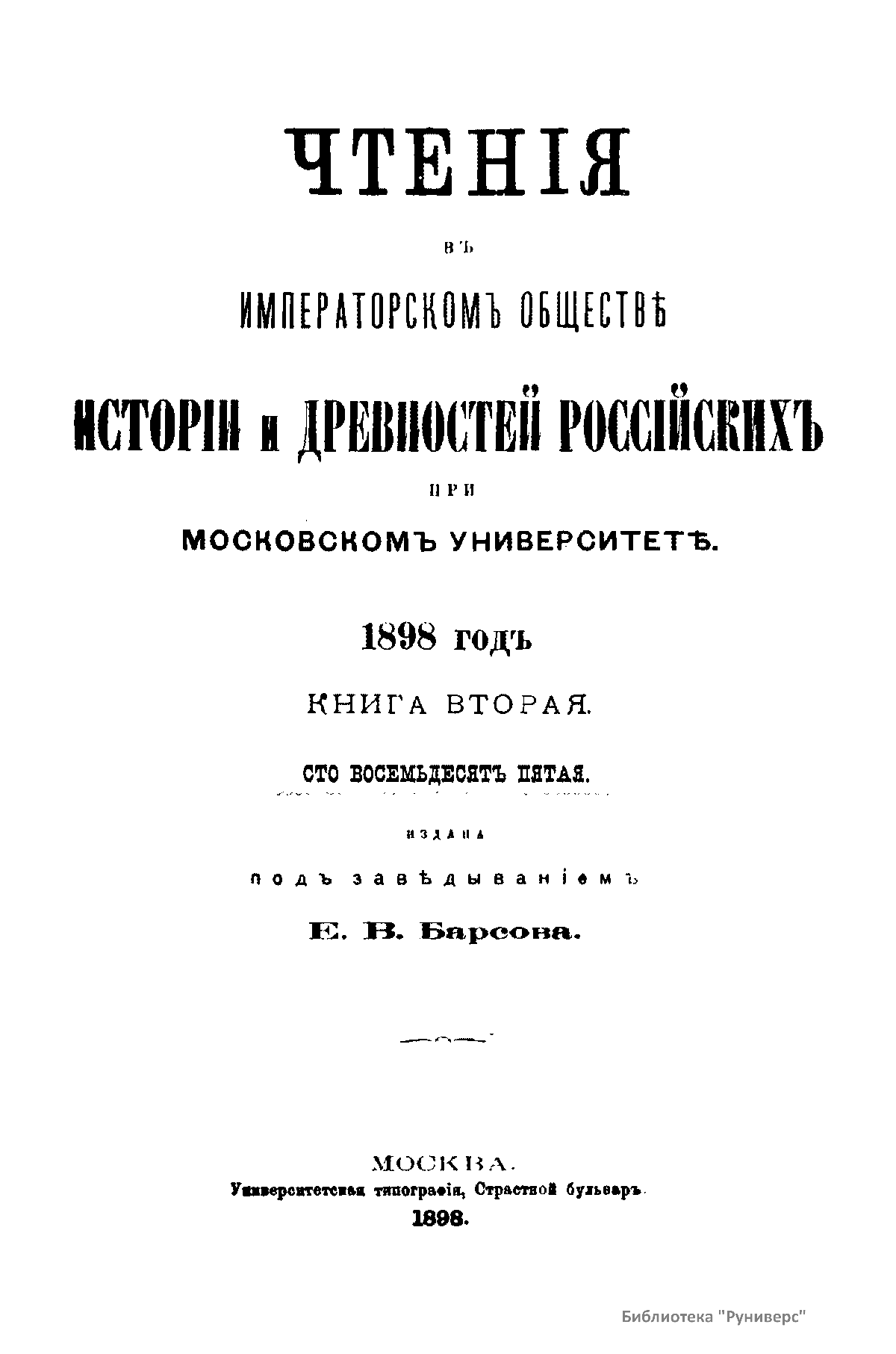 Чтенiя въ императорскомъ обществѣ Исторiи и Древностей Россiйских при Московском Университетѣ. 1898 годъ. Книга вторая