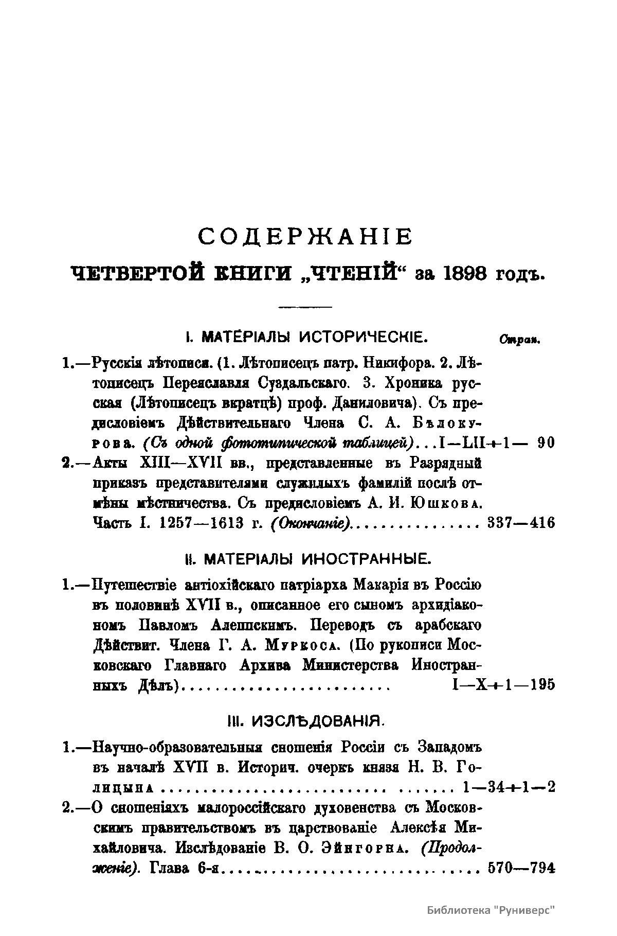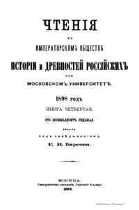 Чтенiя въ императорскомъ обществѣ Исторiи и Древностей Россiйских при Московском Университетѣ. 1898 годъ. Книга четвертая