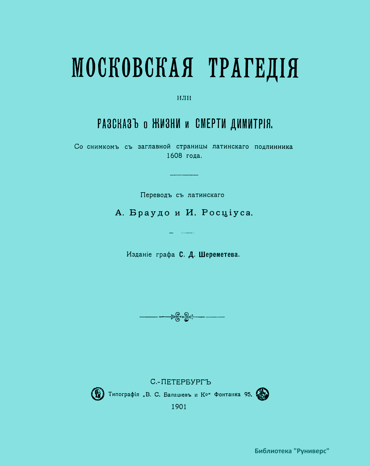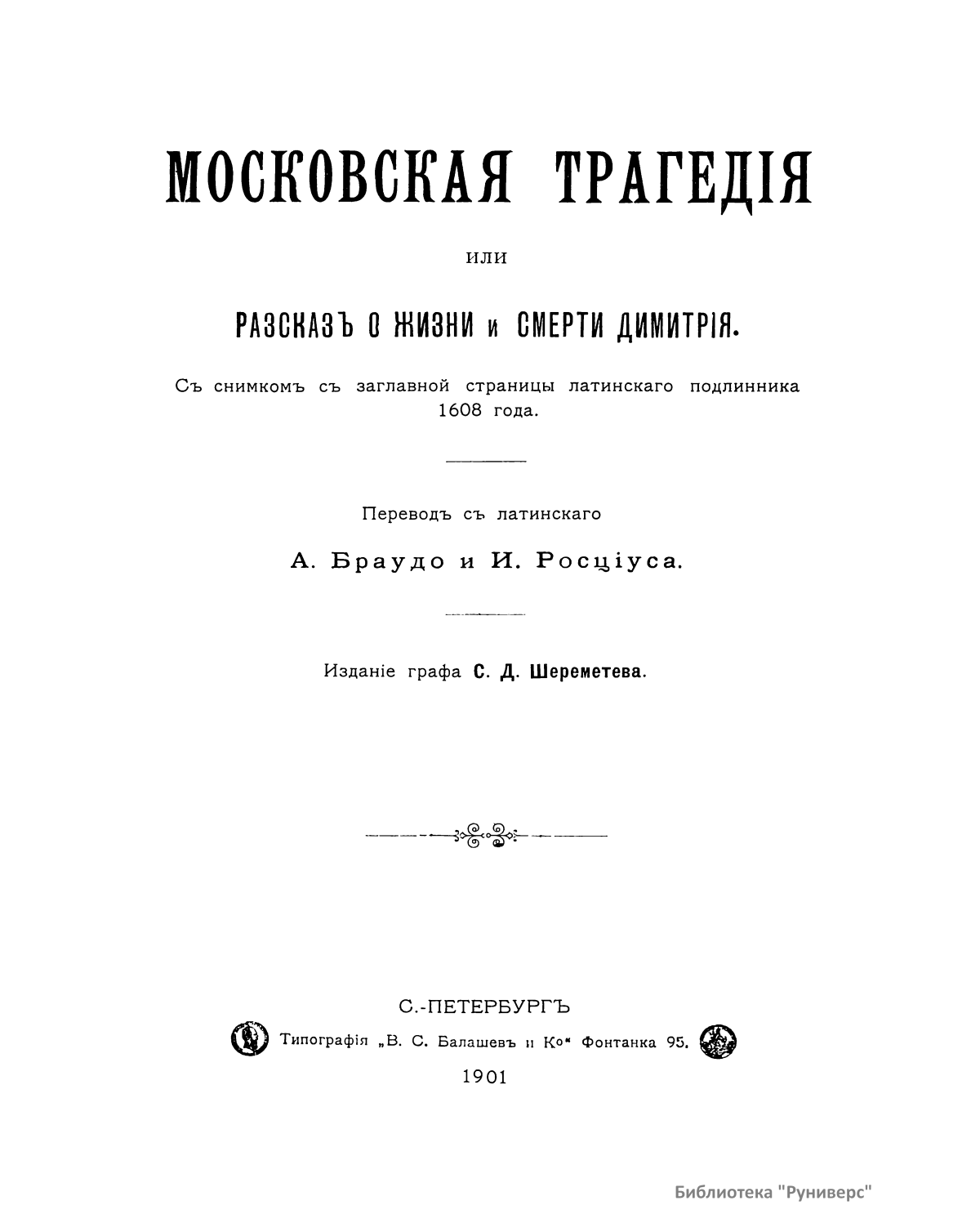 Московская трагедiя или разсказъ о жизни и смерти Димитрiя