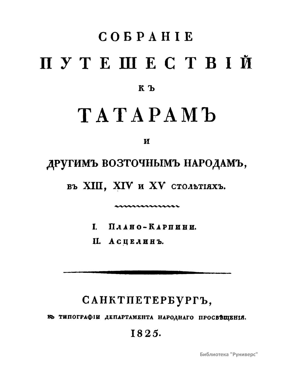 Собранiе путешествiй къ татарамъ и другимъ возточнымъ народамъ, въ XIII, XIV и XV столѣтiяхъ