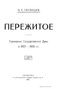 Пережитое. Учреждение Государственной Думы в 1905-1906 гг.