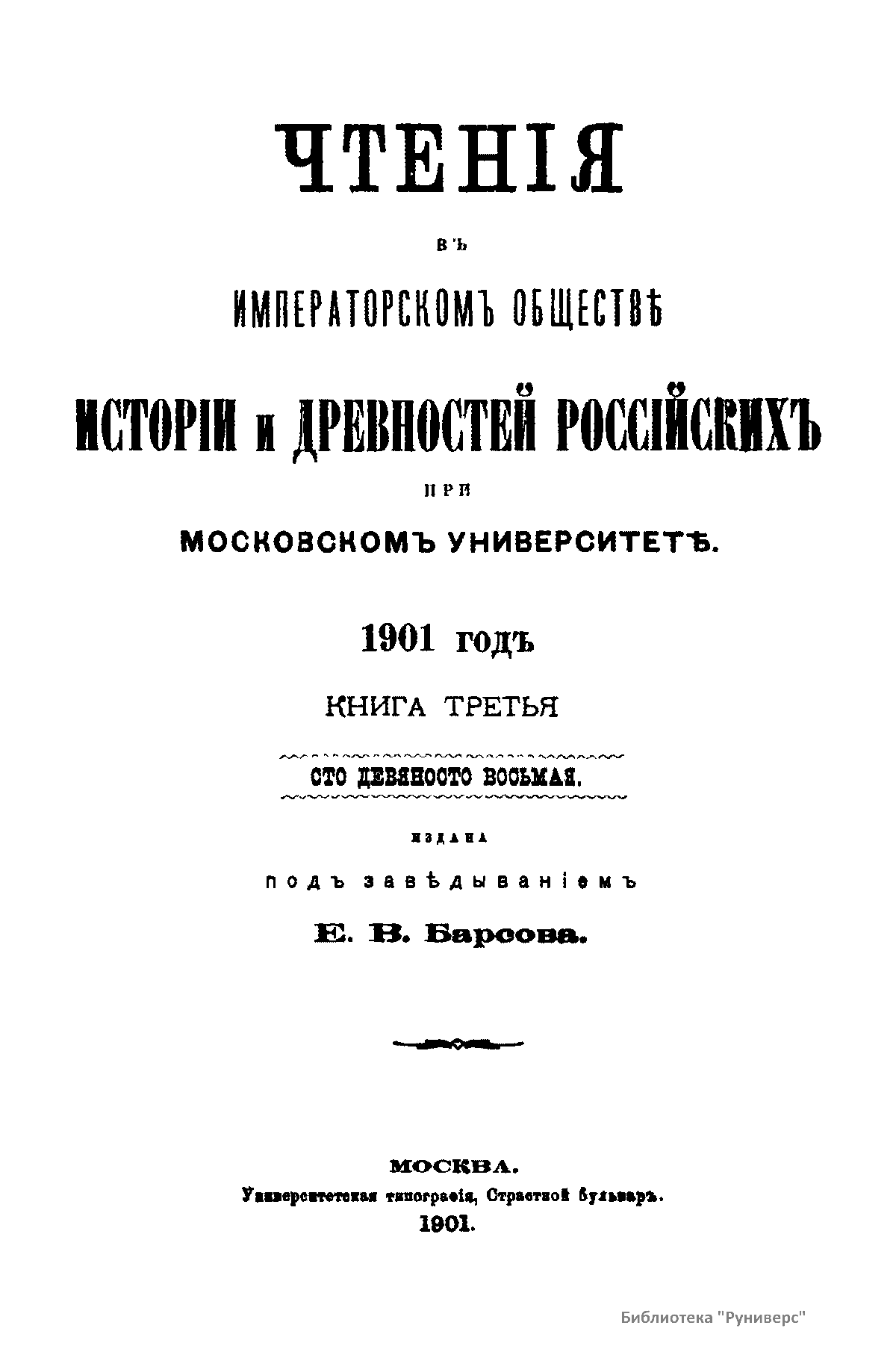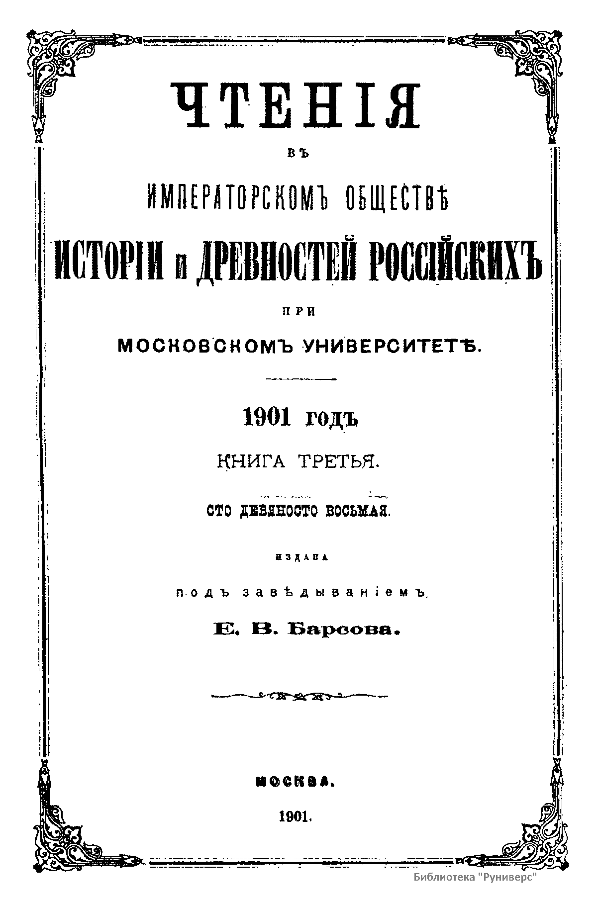 Чтенiя въ императорскомъ обществѣ Исторiи и Древностей Россiйских при Московском Университетѣ. 1901 годъ. Книга третья