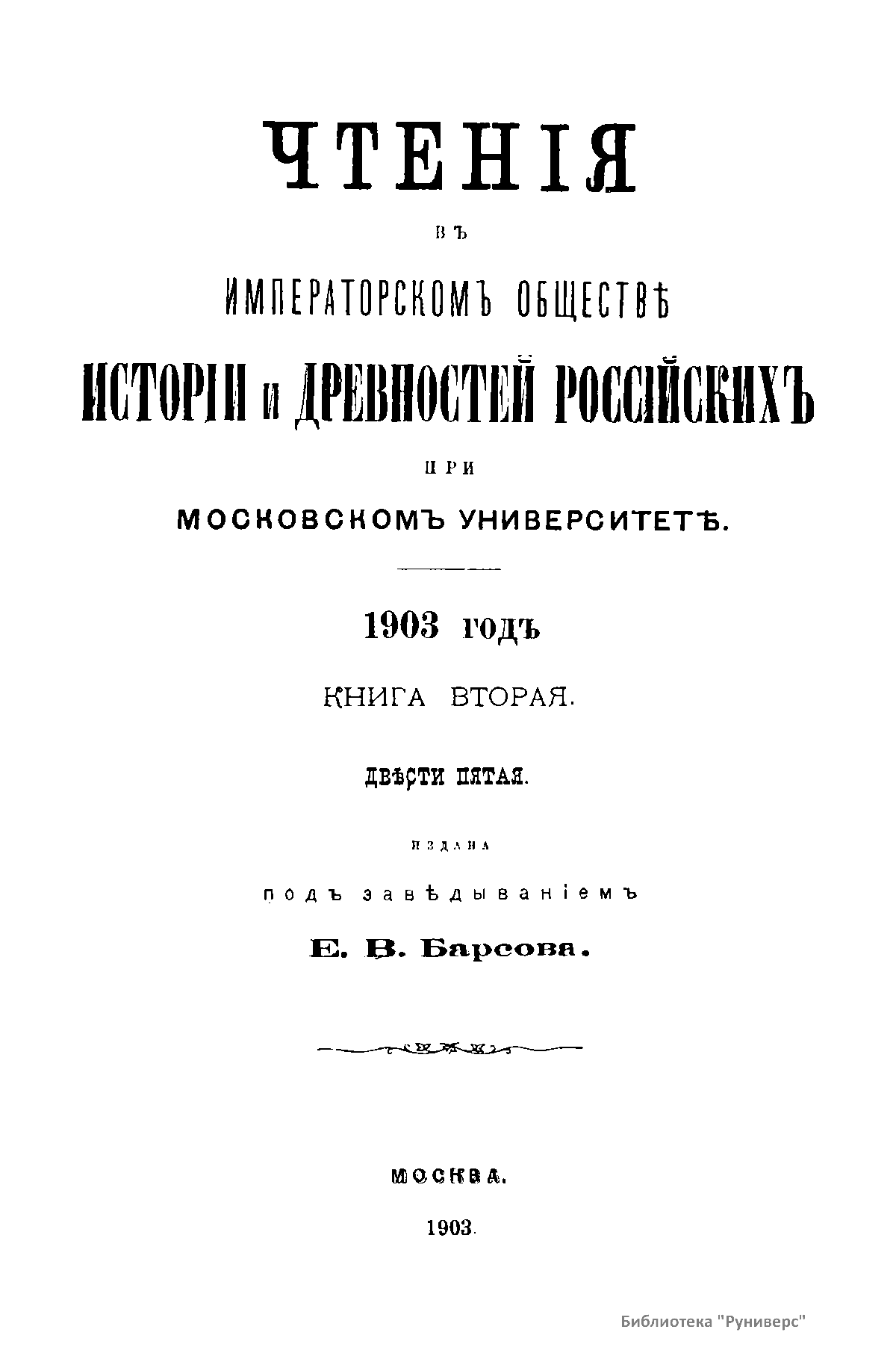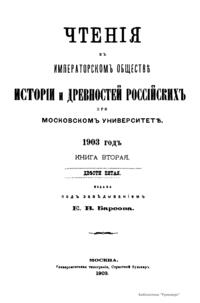 Чтенiя въ Императорскомъ Обществѣ Исторiи и Древностей Россiйскихъ при Московскомъ Университетѣ. 1903 годъ. Книга вторая