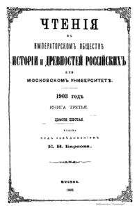 Чтения в Императорском Обществе Истории и Древностей Российских при Московском Университете. 1903 год. Книга третья