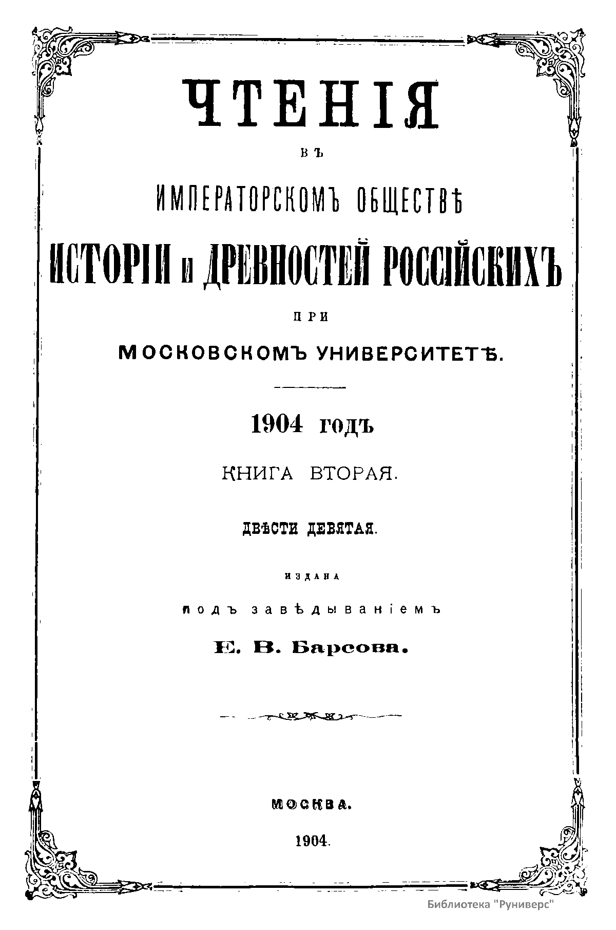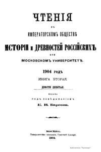 Чтенiя въ Императорскомъ Обществѣ Исторiи и Древностей Россiйскихъ при Московскомъ Университетѣ. 1904 годъ. Книга вторая