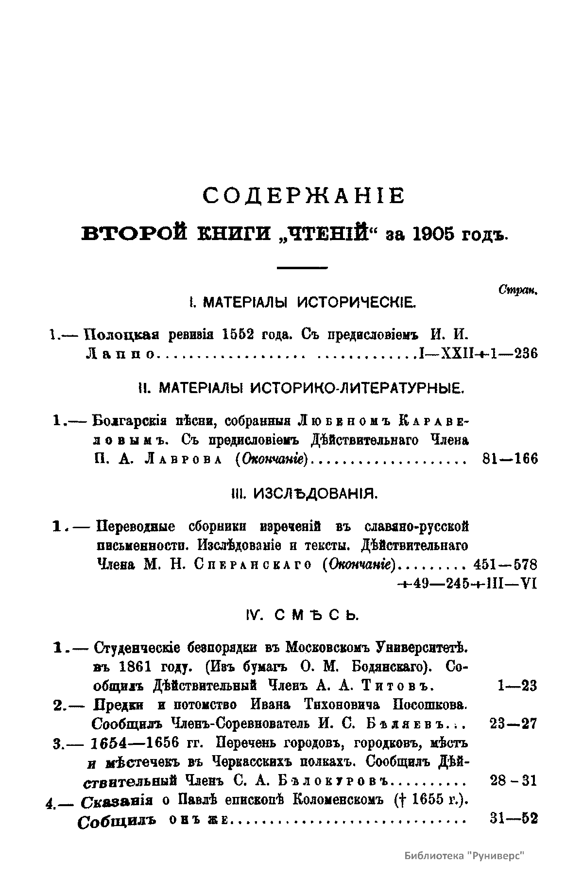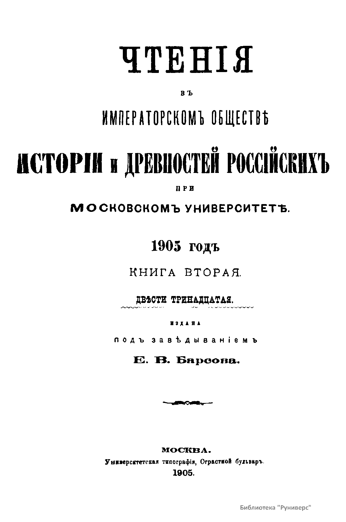 Чтенiя въ Императорскомъ Обществѣ Исторiи и Древностей Россiйскихъ при Московскомъ Университетѣ. 1905 годъ. Книга вторая