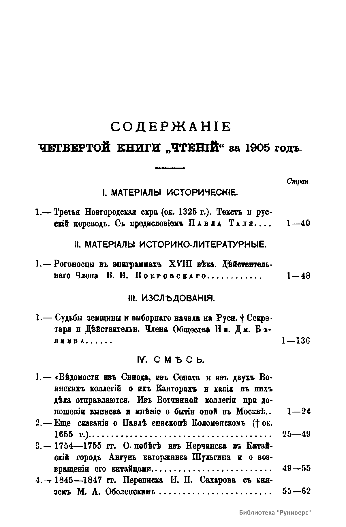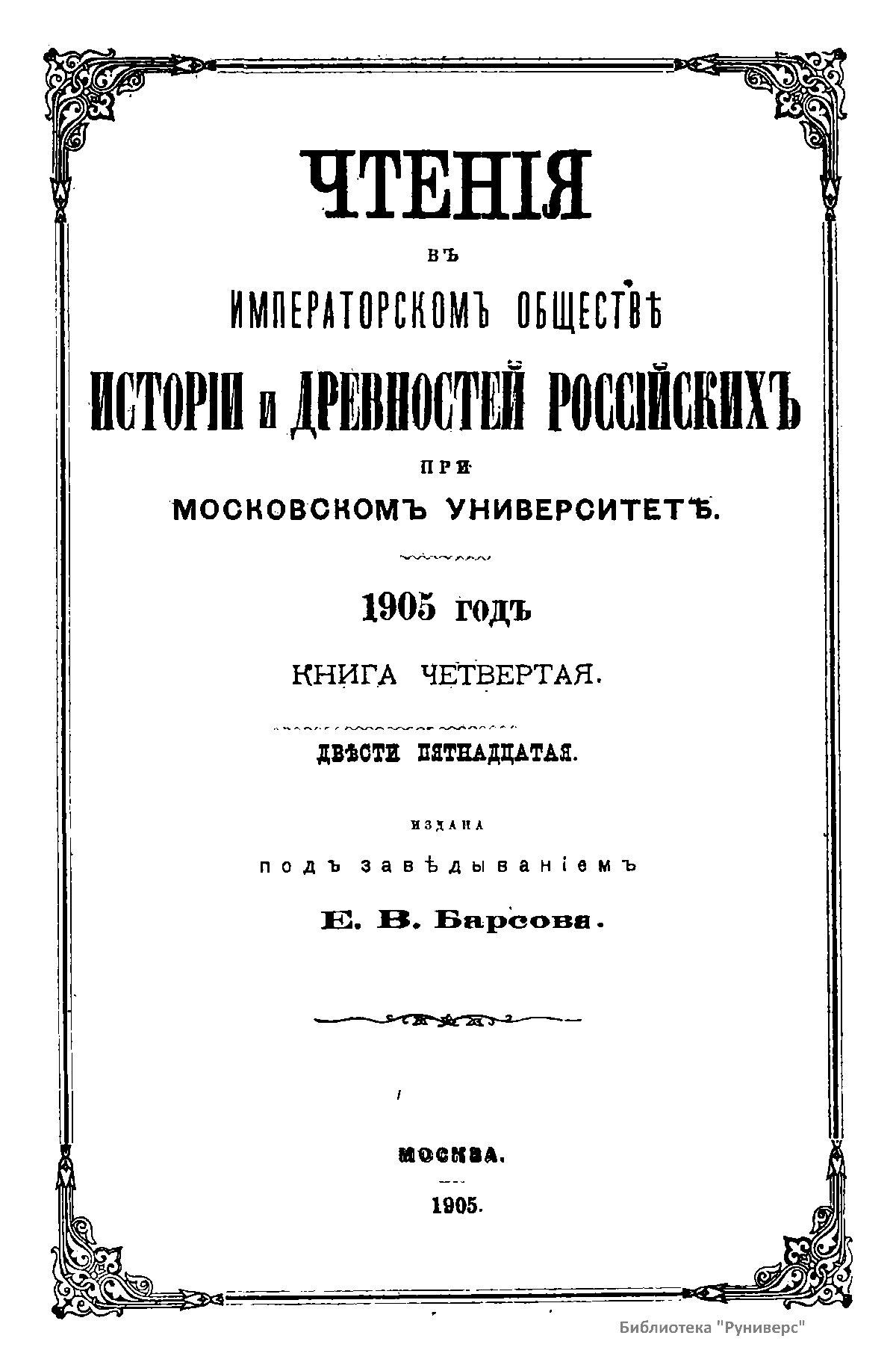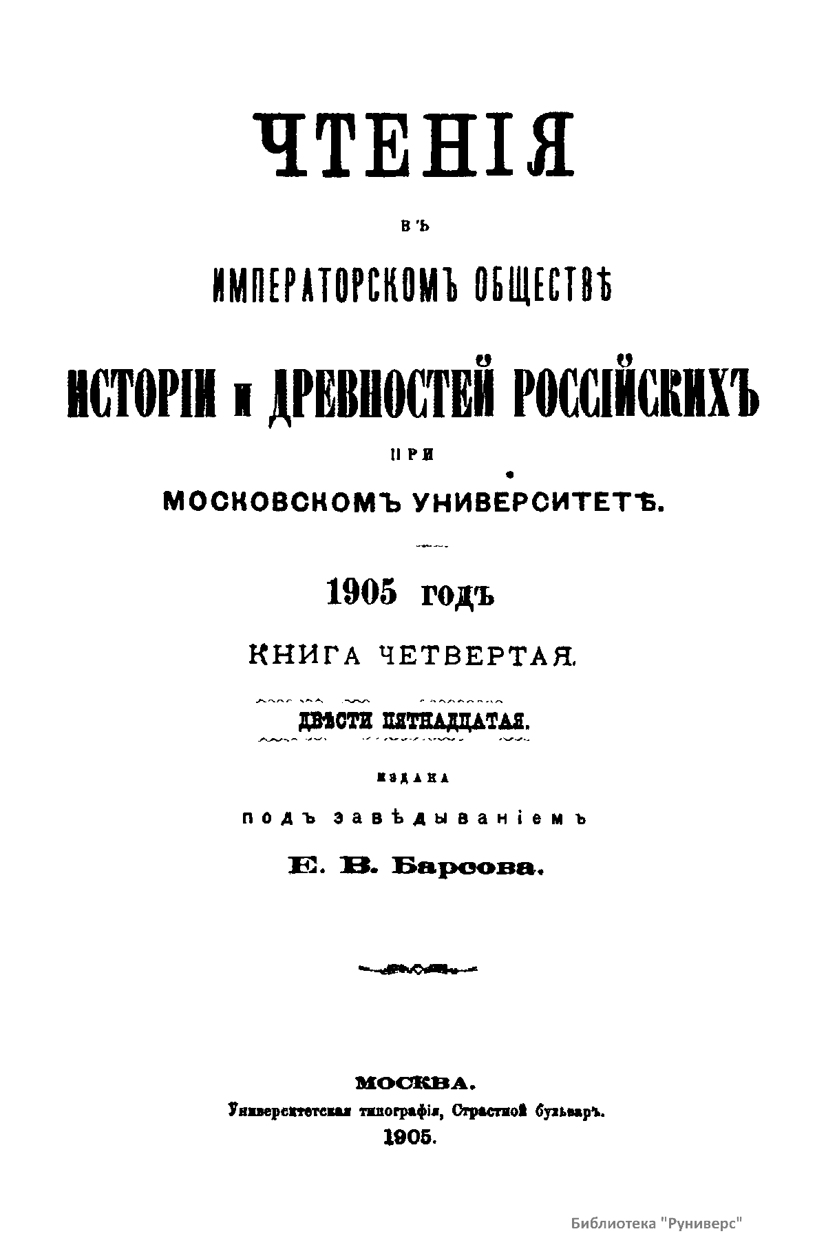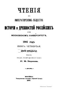 Чтенiя въ Императорскомъ Обществѣ Исторiи и Древностей Россiйскихъ при Московскомъ Университетѣ. 1905 годъ. Книга четвертая
