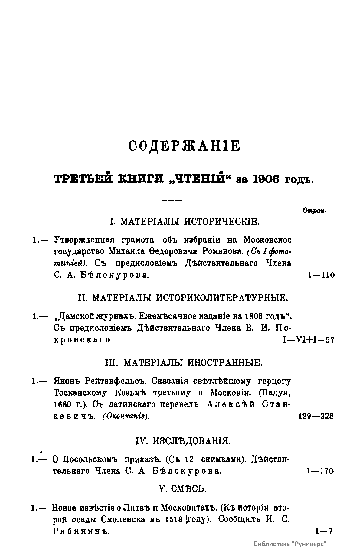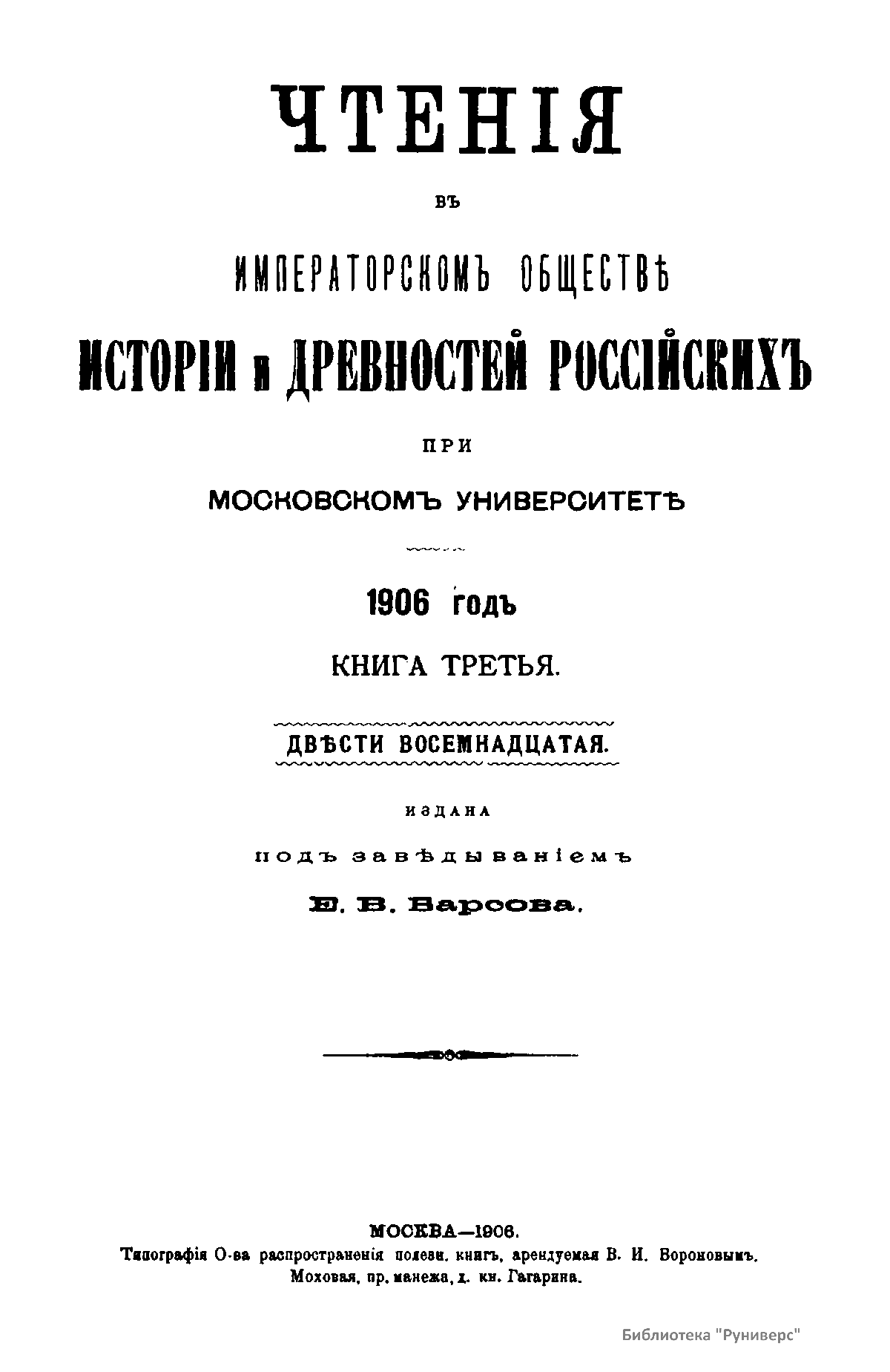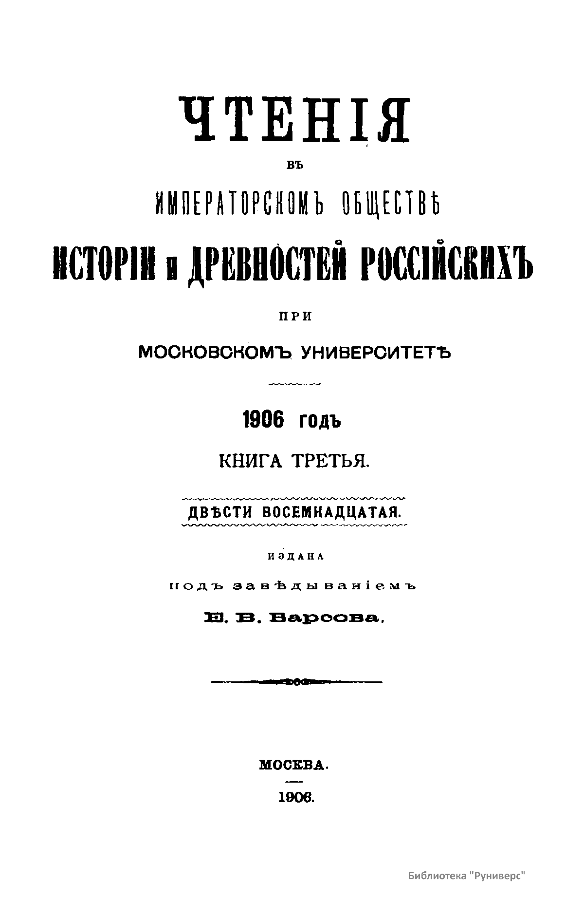 Чтенiя въ Императорскомъ Обществѣ Исторiи и Древностей Россiйскихъ при Московскомъ Университетѣ. 1906 годъ. Книга третья