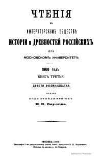 Чтения в Императорском Обществе Истории и Древностей Российских при Московском Университете. 1906 год. Книга третья